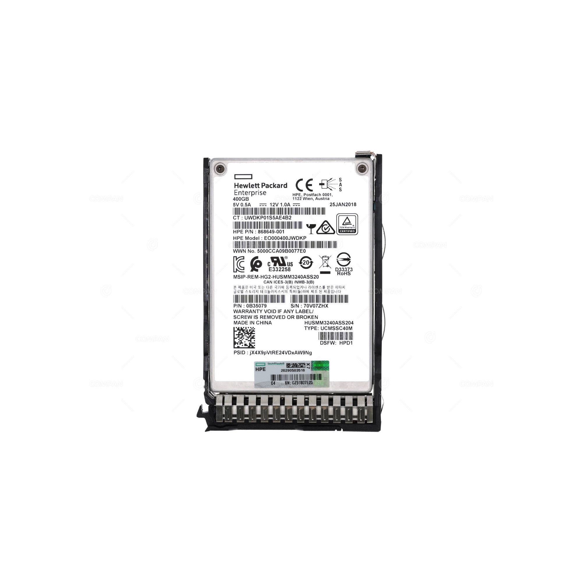 873563-001 HP 400GB 12G SAS DS SSD 2.5 SFF WI WRITE INTENSIVE DRIVE FOR G8 G9 G10 868649-001, 802582-B21, 0B35079