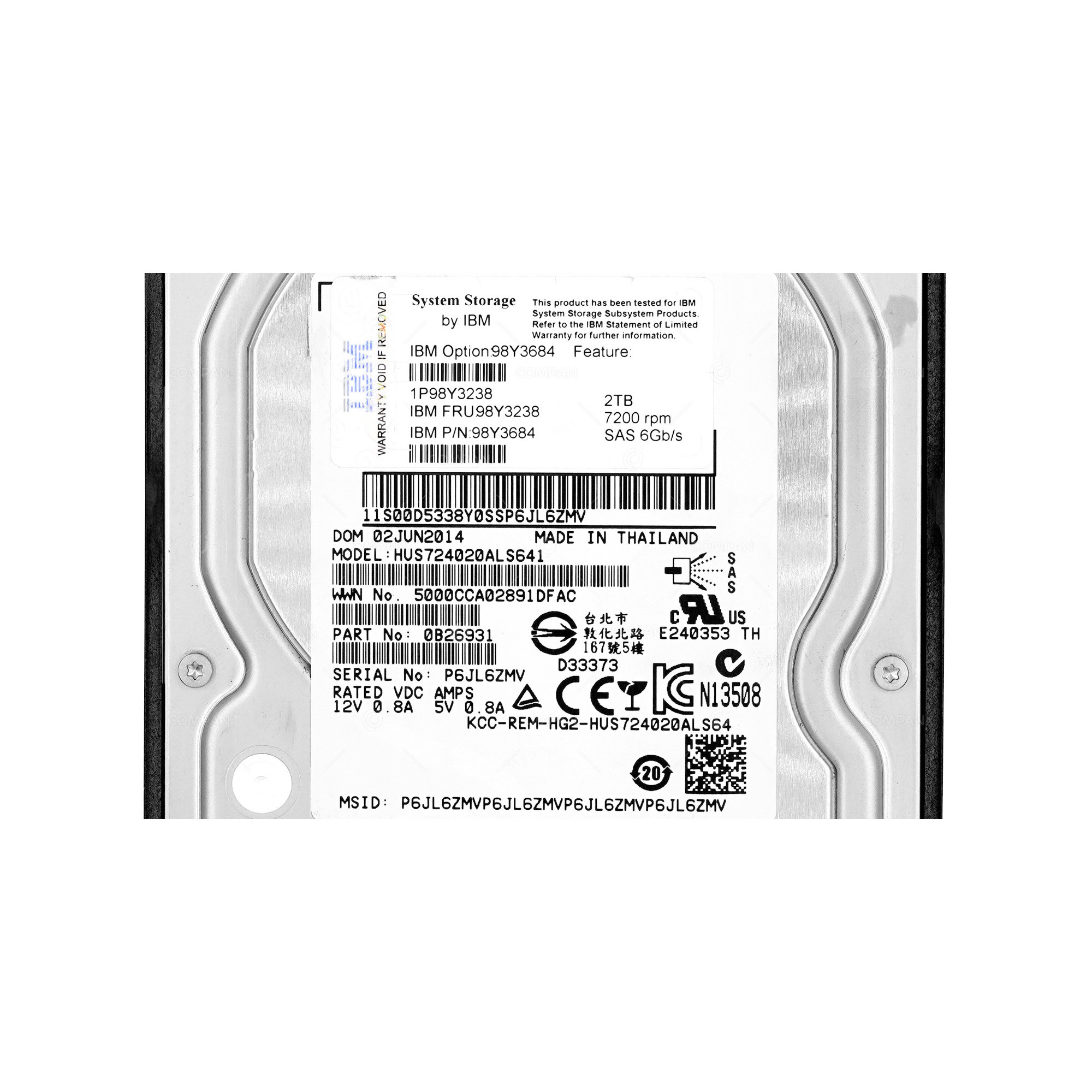 98Y3684 IBM HARD DRIVE 2TB 7.2K 6G 3.5 LFF SAS FOR HS-1235T 0990989-02,98Y3238, HUS724020ALS641