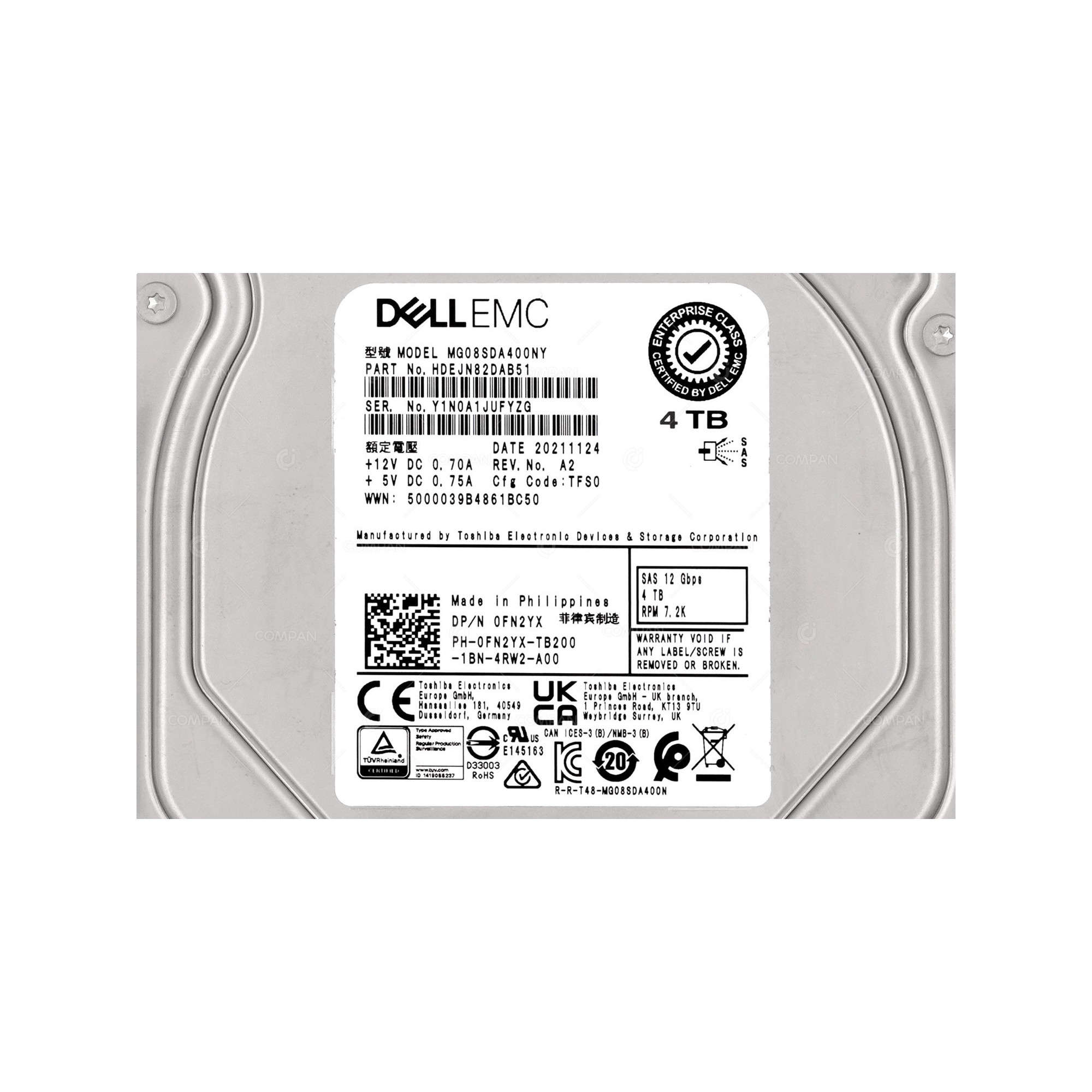 FN2YX DELL HARD DRIVE 4TB 12G 7.2K SAS 3.5 LFF G11 G12 G13 0FN2YX, MG08SDA400NY