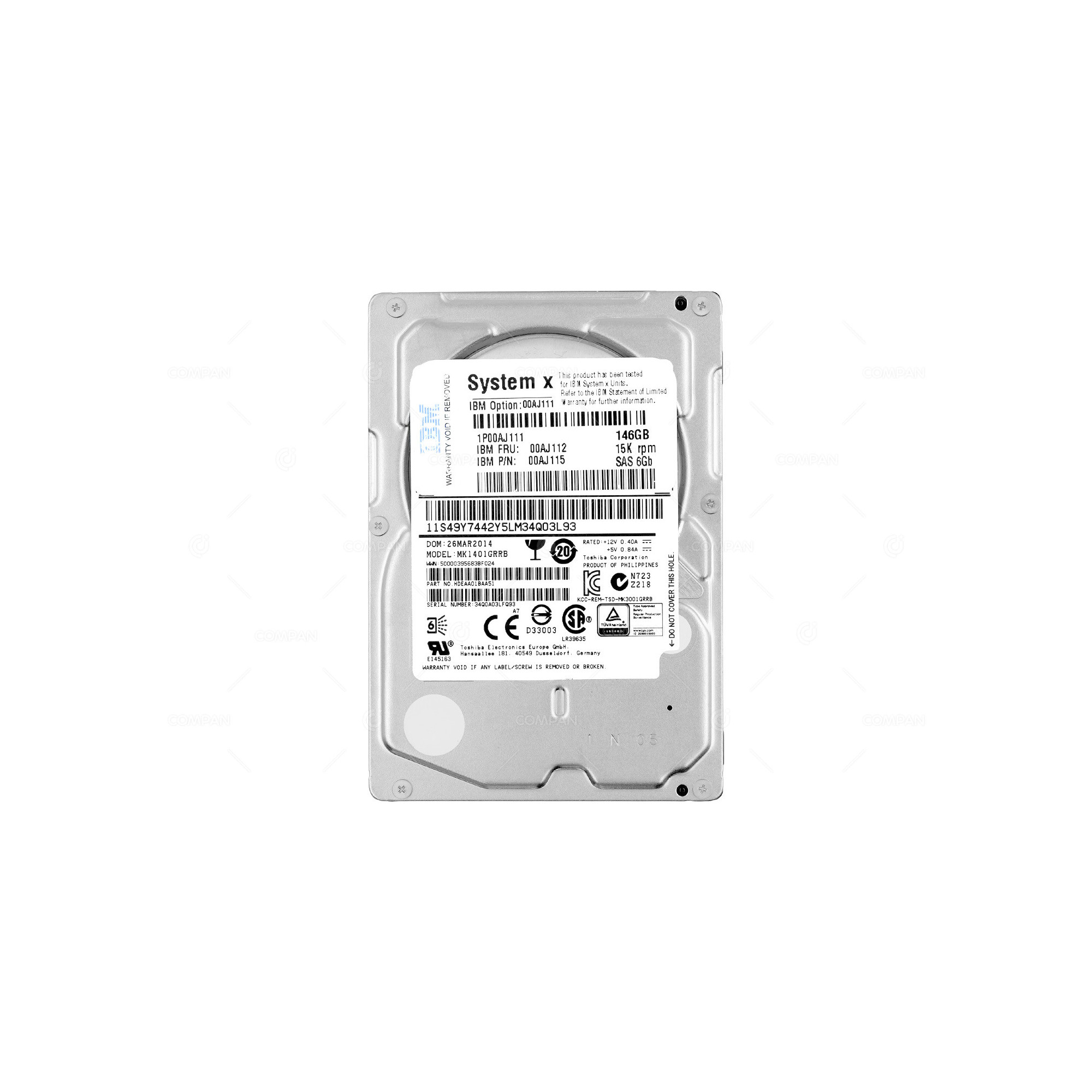 MK1401GRRB HARD DRIVE TOSHIBA 146GB 15K 2,5 SAS 6GB HDEAA01BAA51