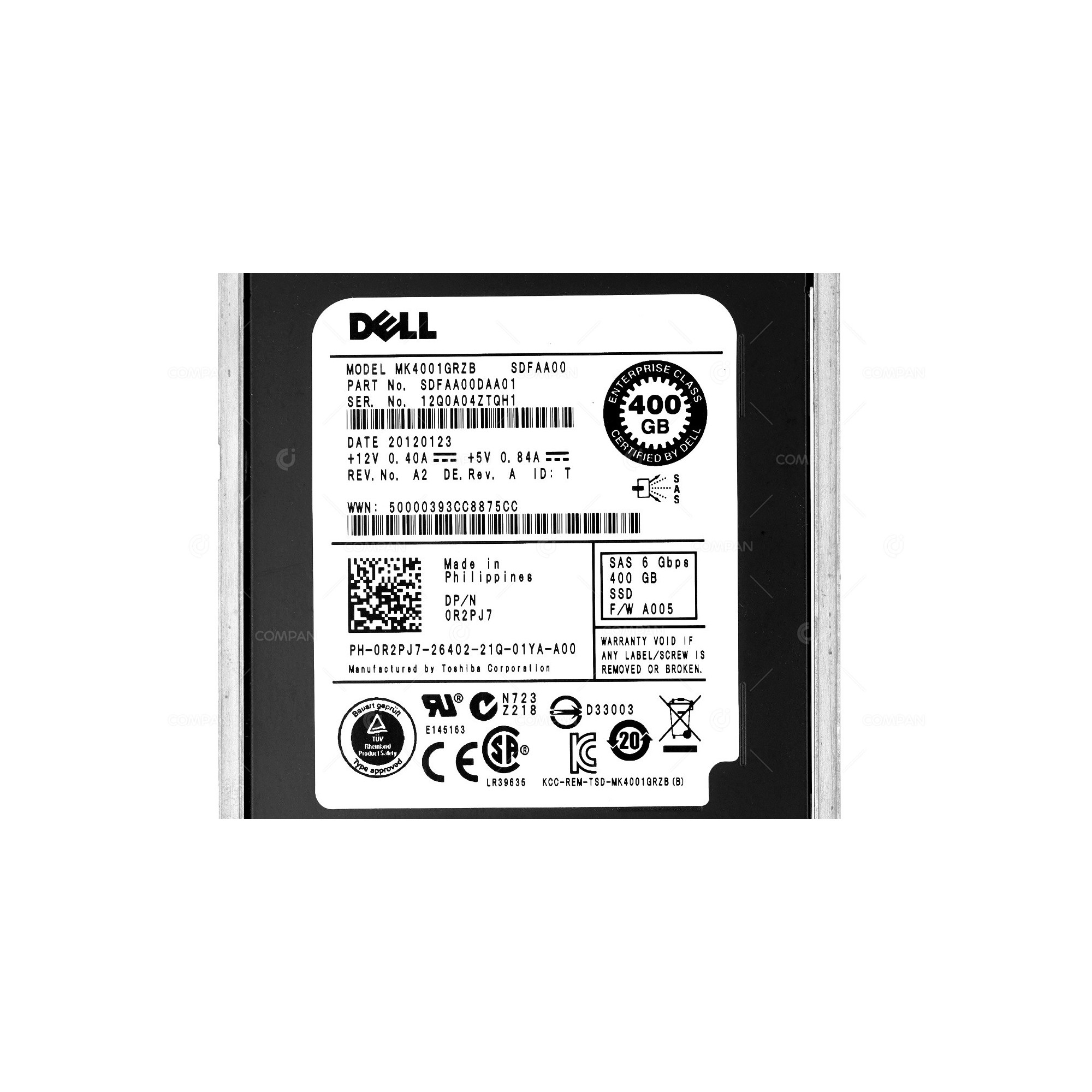 R2PJ7 DELL 400GB 2,5" SAS 6G SSD HOT-SWAP FOR P SERIES 0R2PJ7, MK4001GRZB