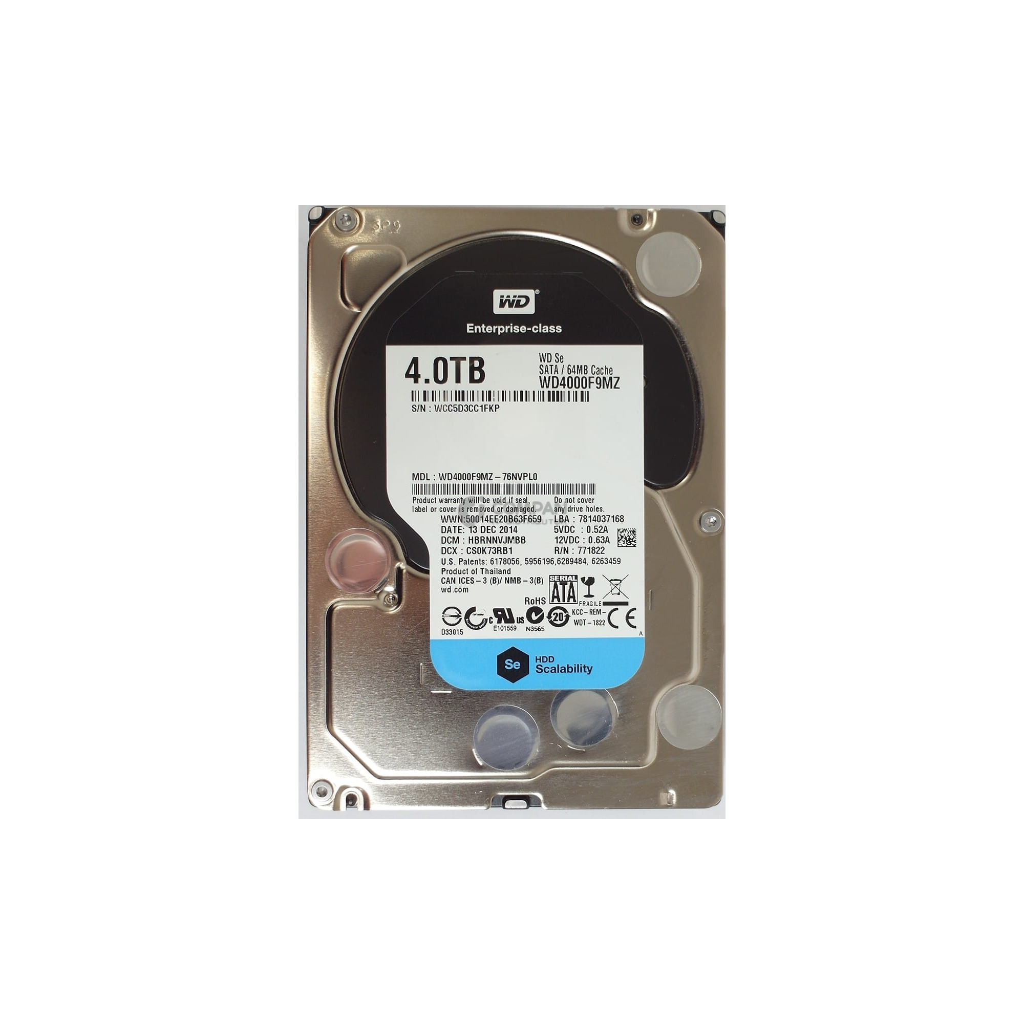 WD4000F9MZ WD HARD DRIVE 4TB 7.2K 6G 3.5 LFF 64MB CACHE SATA WD4000F9MZ-76NVPL0