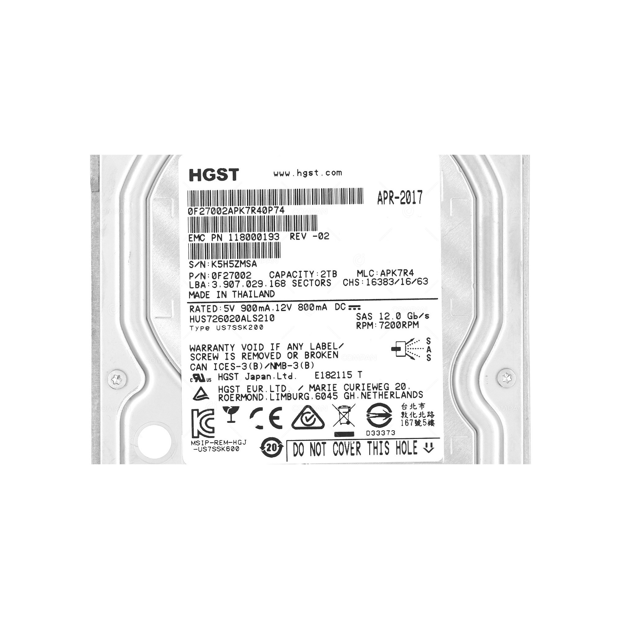 | Part Options | 118000193, APK7R4, US7SSK200, HUS726020ALS210 |
