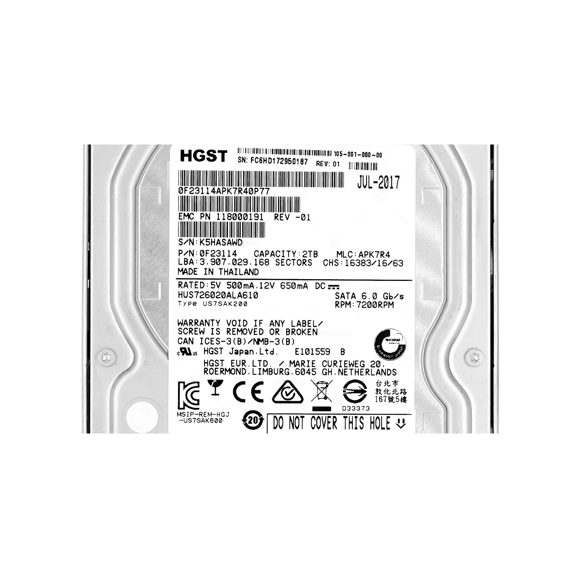| Part Options | 118000191-01, HUS726020ALA610, ST2000NM0055 |