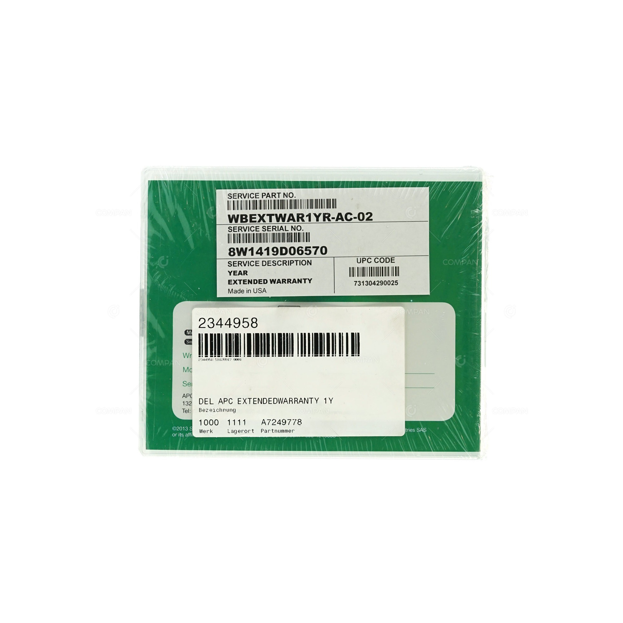 WBEXTWAR1YR-AC-02 APC SERVICE PACK 1 YEAR EXTENDED WARRANTY A7249778, 2344958591289170001, 731304290025