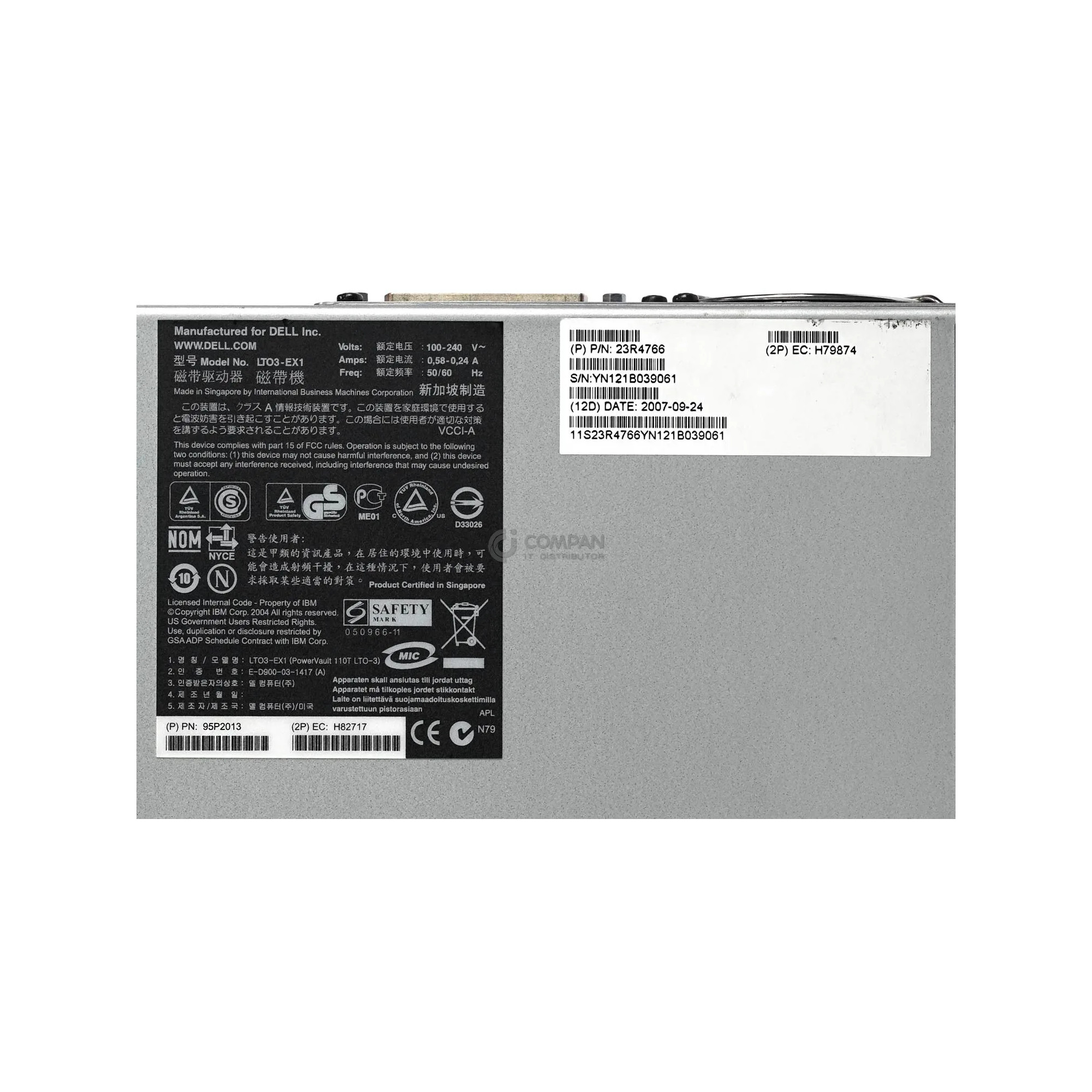 | Description | PV110T LTO3 LVD/SCSI EXTERNAL TAPE DRIVE |