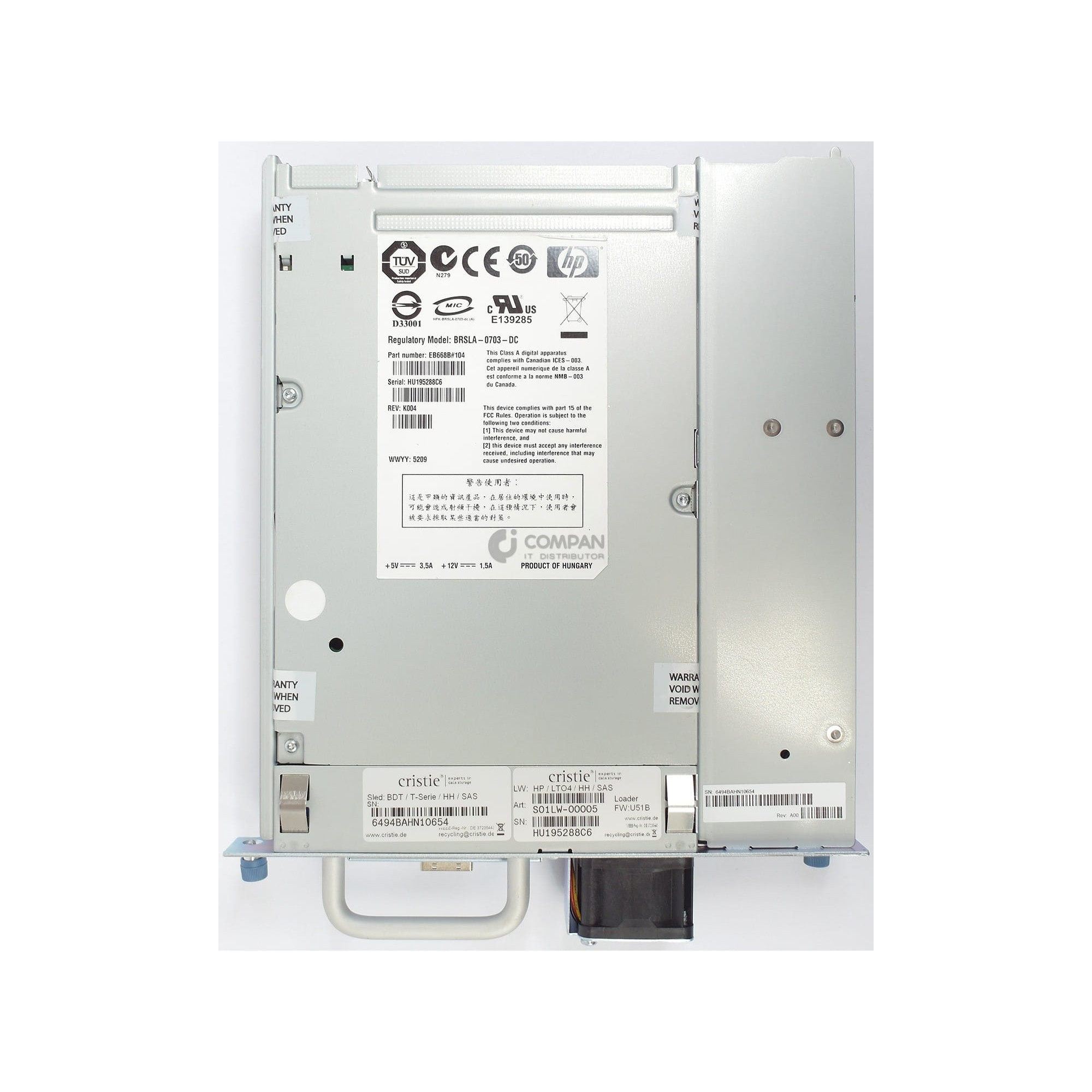 | Description | LTO4 ULTRIUM 1760 SAS HH TAPE DRIVE |