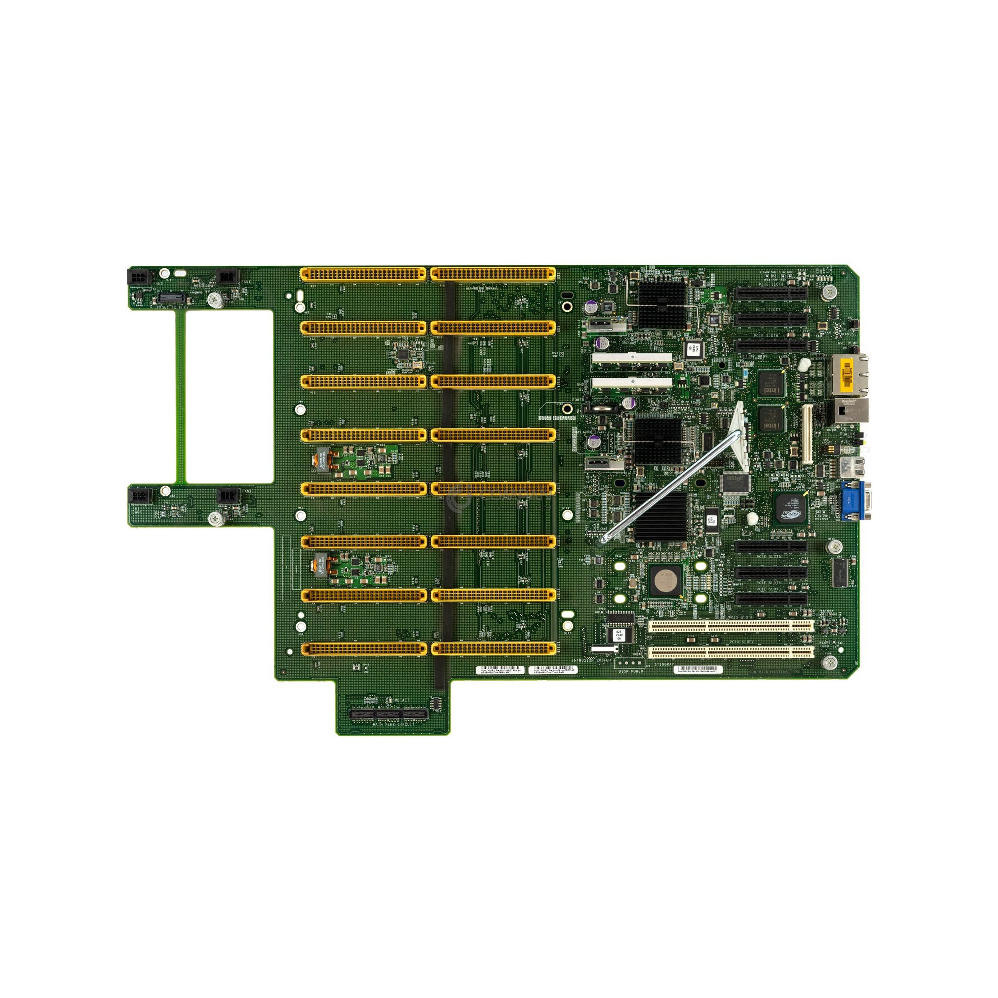 | Connections | 4 x on-board 10/100/1000Base-T Ethernet ports – 4 x USB 2.0 ports (2 forward, 2 rear facing) – 6 x PCI Express expansion slots (4 x8, and 2 x4) 2 x 64-bit PCI-X slots @ 100 MHz |