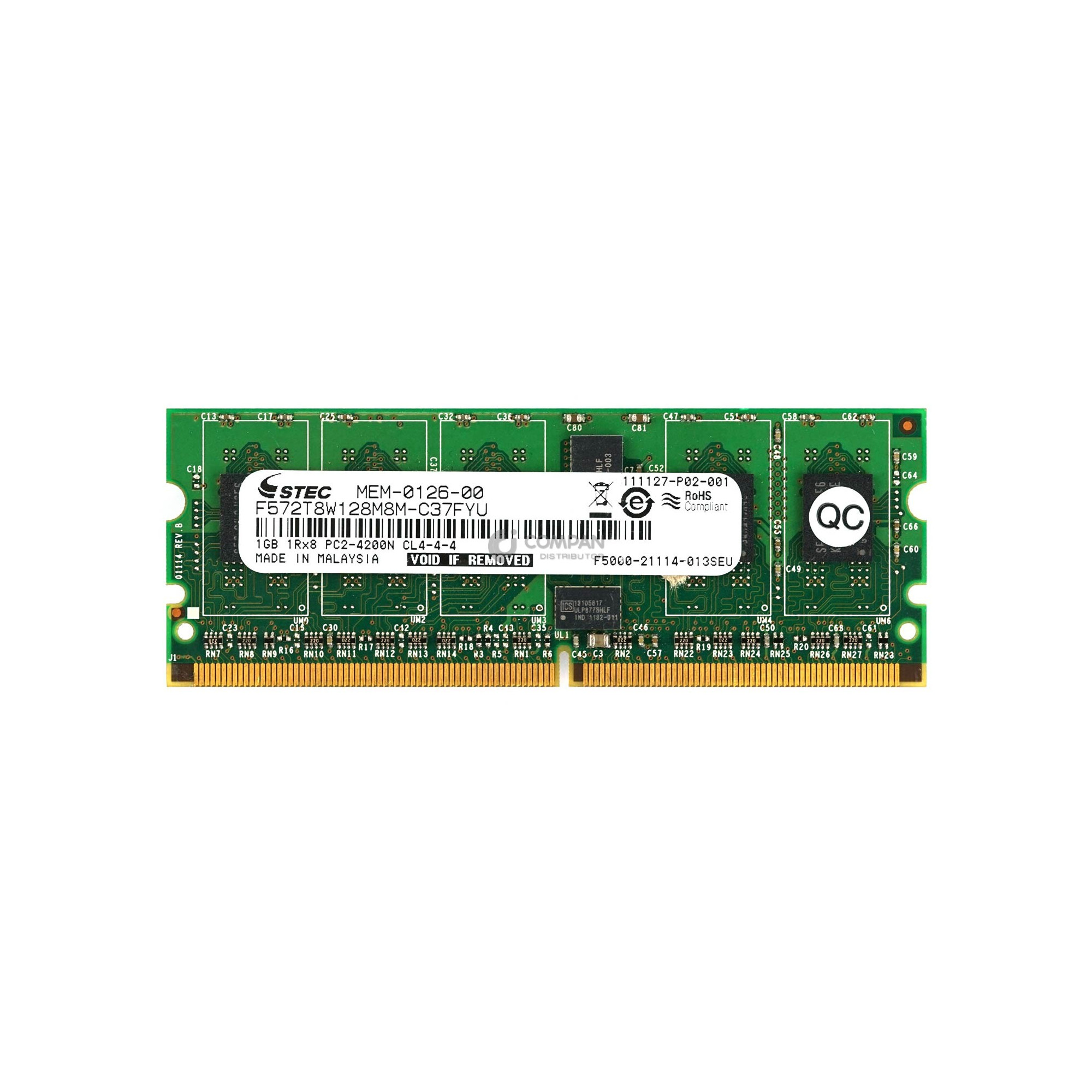 MEM-0126-00 STEC MEMORY 1GB 1RX8 PC2 4200N - F572T8W128M8M-C37FYU Manafucturer: STEC Capacity: 1GB
