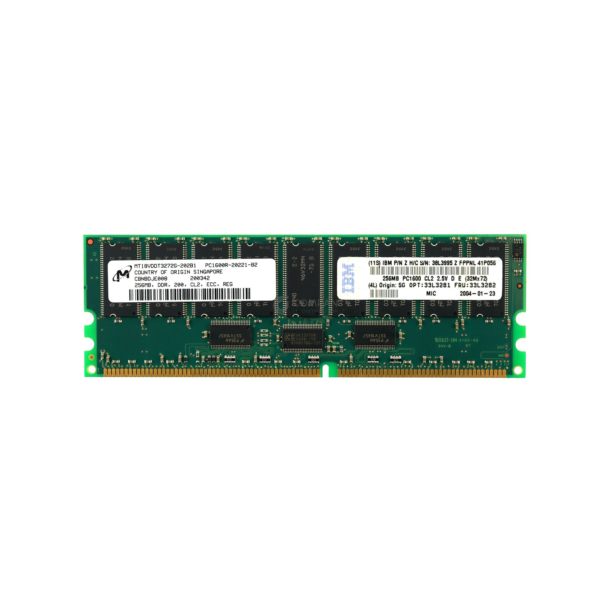 33L3282 IBM 256MB DDR 200MHZ PC1600 MEMORY Capacity: 256 MB Product Number: 33L3282 Bus Speed: PC-1600 (DDR-200) Memory Features: ECC-Speicher, Registered Form Factor: DIMM