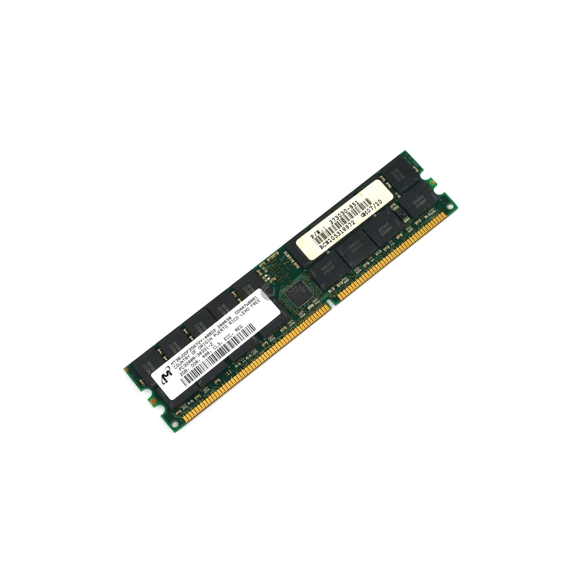 373030-851 HP MEMORY 2GB PC3200R DDR 400 CL3 ECC REG - MT36VDDF25672Y-40BD2 Capacity: 2 GB Product Number: 373030-851 Bus Speed: PC-3200 (DDR-400) Memory Features: ECC-Speicher, Registered Form Factor: DIMM