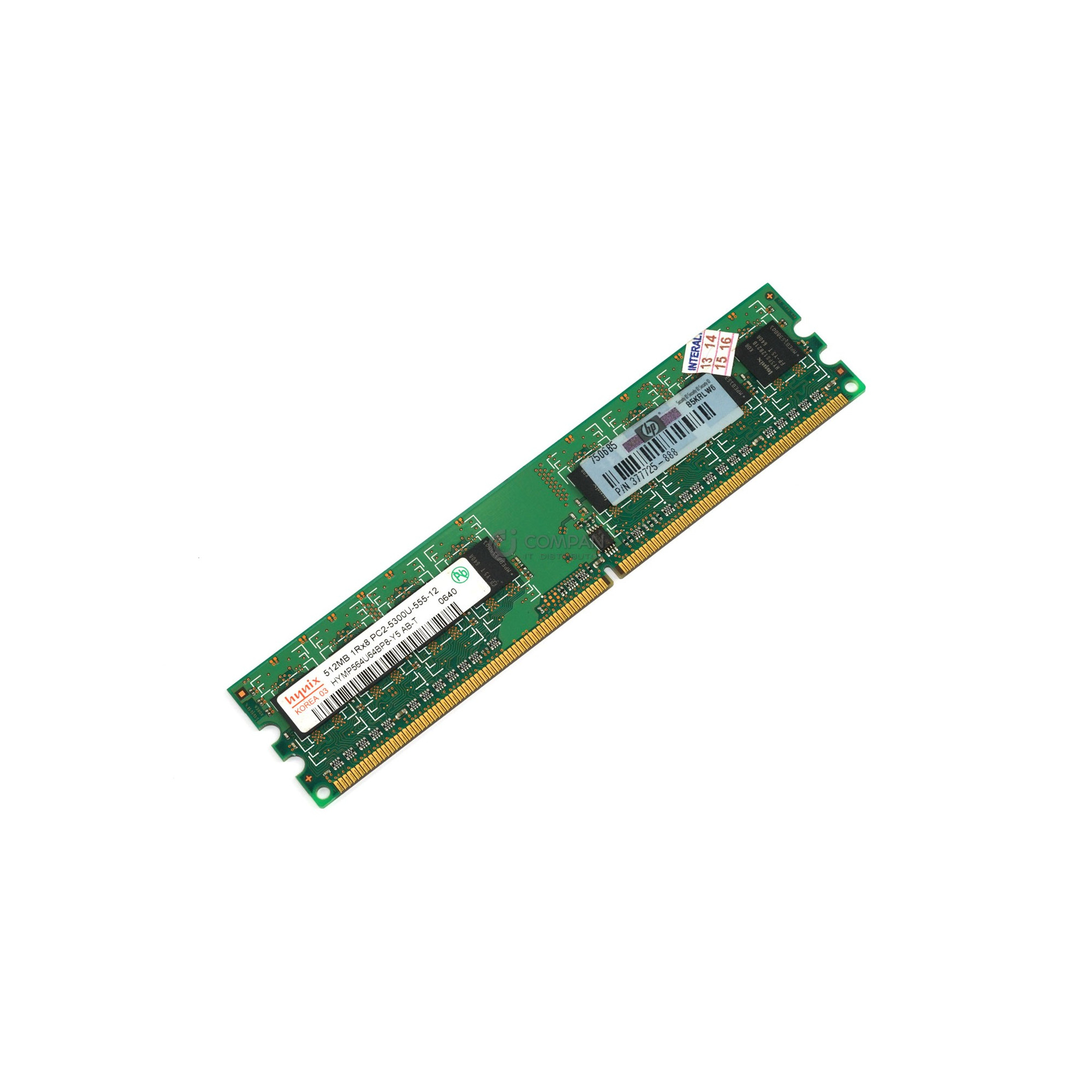 377725-888 HP MEMORY 512MB 1RX8 PC2 5300U DDR2 Capacity: 512 MB Product Number: 377725-888 Bus Speed: PC2-5300 (DDR2-667) Memory Features: non-ECC Form Factor: DIMM