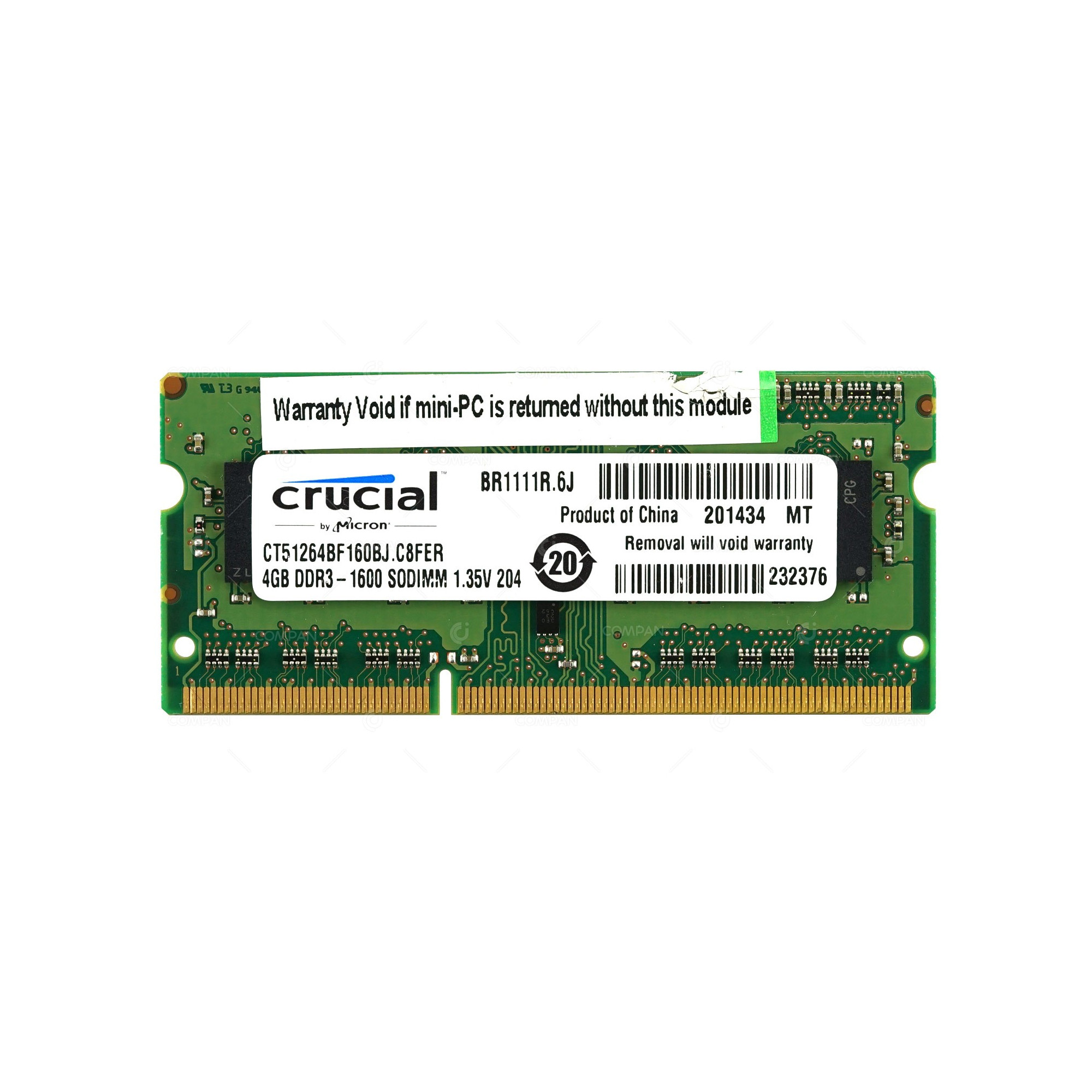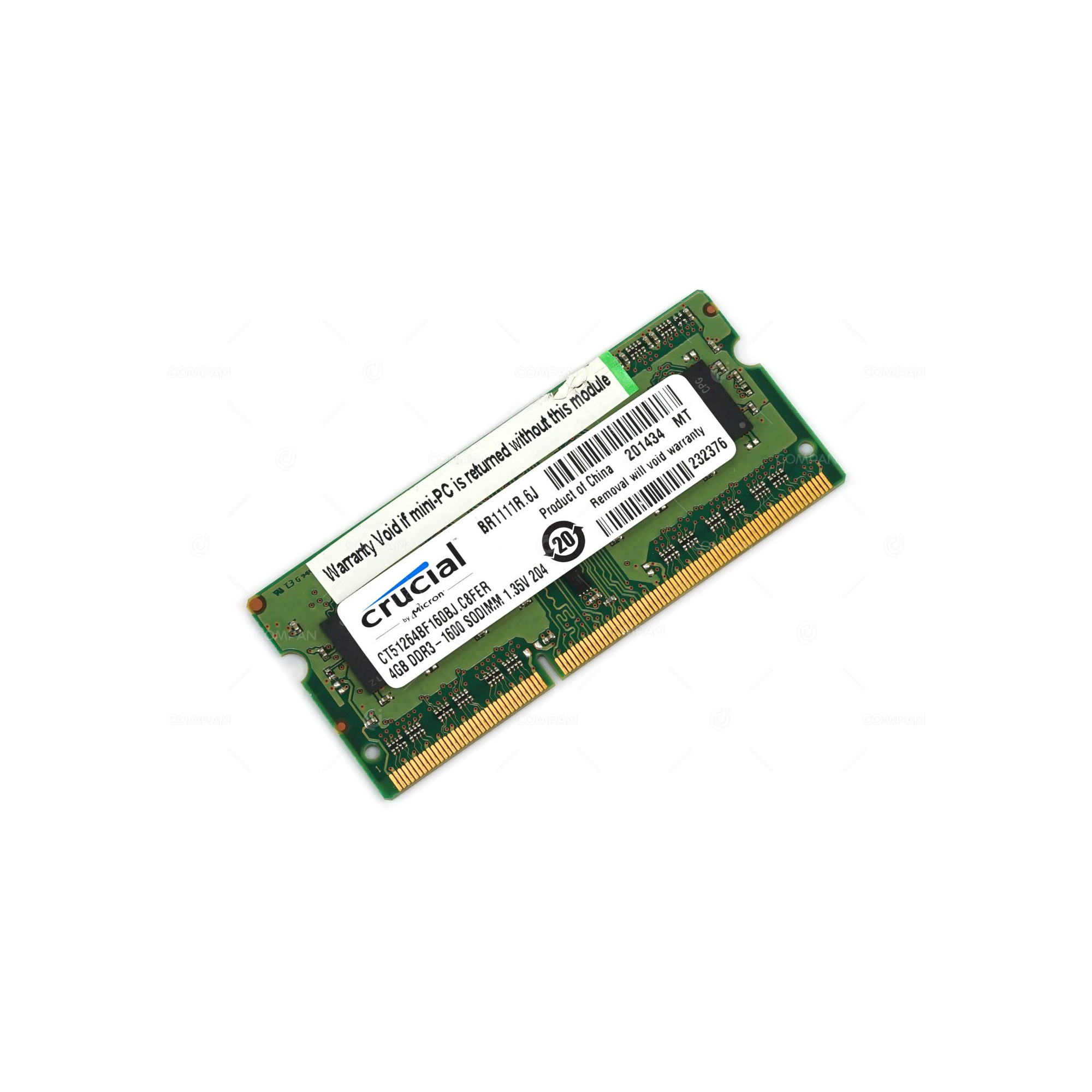 CT51264BF160BJ-C8FER CRUCIAL MEMORY 4GB DDR3 1600 MHZ SODIMM 1.35V 204 CT51264BF160BJ.C8FER, 232376