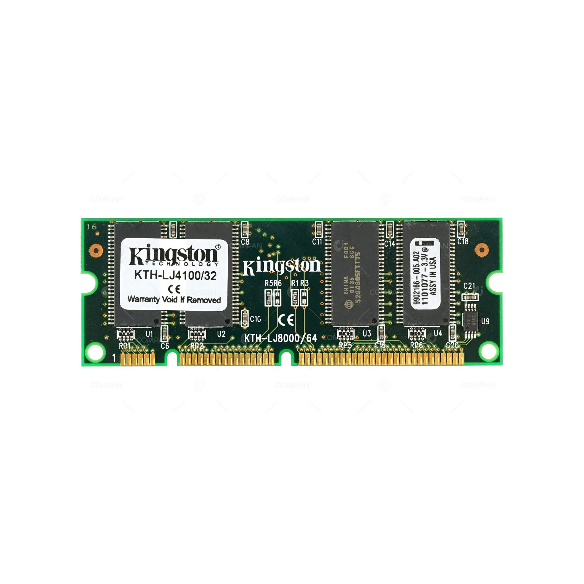 KTH-LJ4100-32 KINGSTON MEMORY 32MB 100 PIN 100MHZ SDRAM SODIMM NON ECC UNBUFFERED FOR LASERJET PRINTER 2200 4000 4050 4100 4100N 4100TN 4100DTN 5000 8000 8100 9000 KTH-LJ4100/32, 9902166-005.A02
