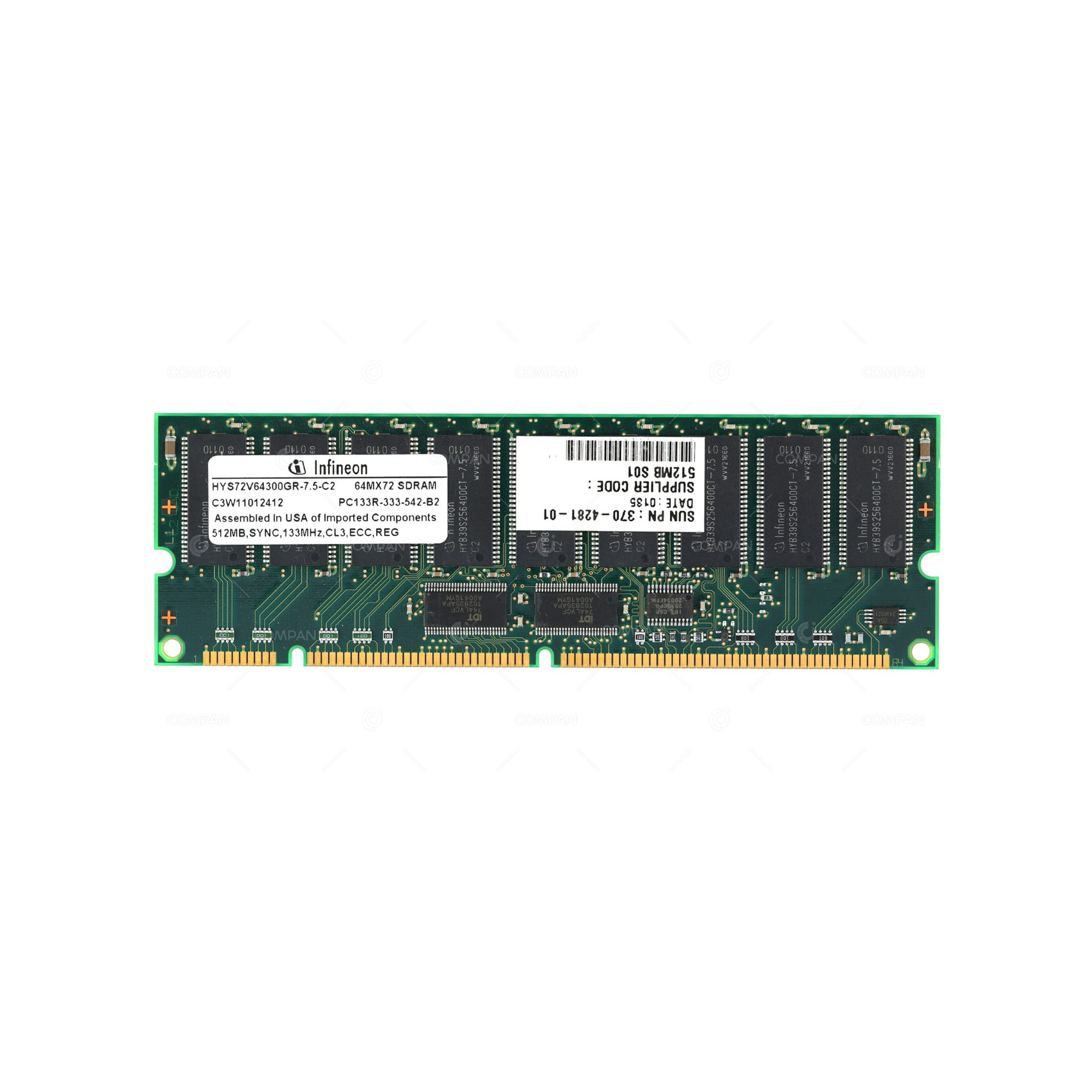 370-4281-01 SUN ORACLE 512MB PC133R SYNC 133MHZ 168 PIN 3.3V CL3 ECC SDRAM RDIMM FOR SUN FIRE V100 V120 HYS72V64300GR-7.5-C2