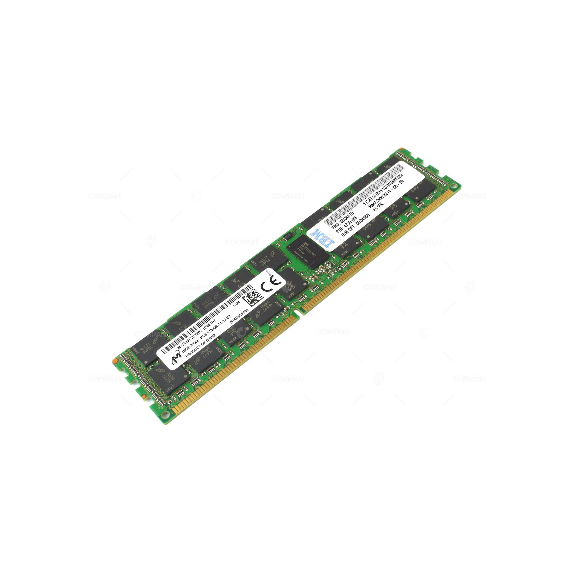 00D4970 IBM 16GB 2RX4 PC3 12800R DDR3 1600 MEMORY - 00D4968 Capacity: 16 GB Product Number: 00D4970 Bus Speed: PC3-12800 (DDR3-1600) Memory Features: ECC-Speicher, Registered Form Factor: RDIMM