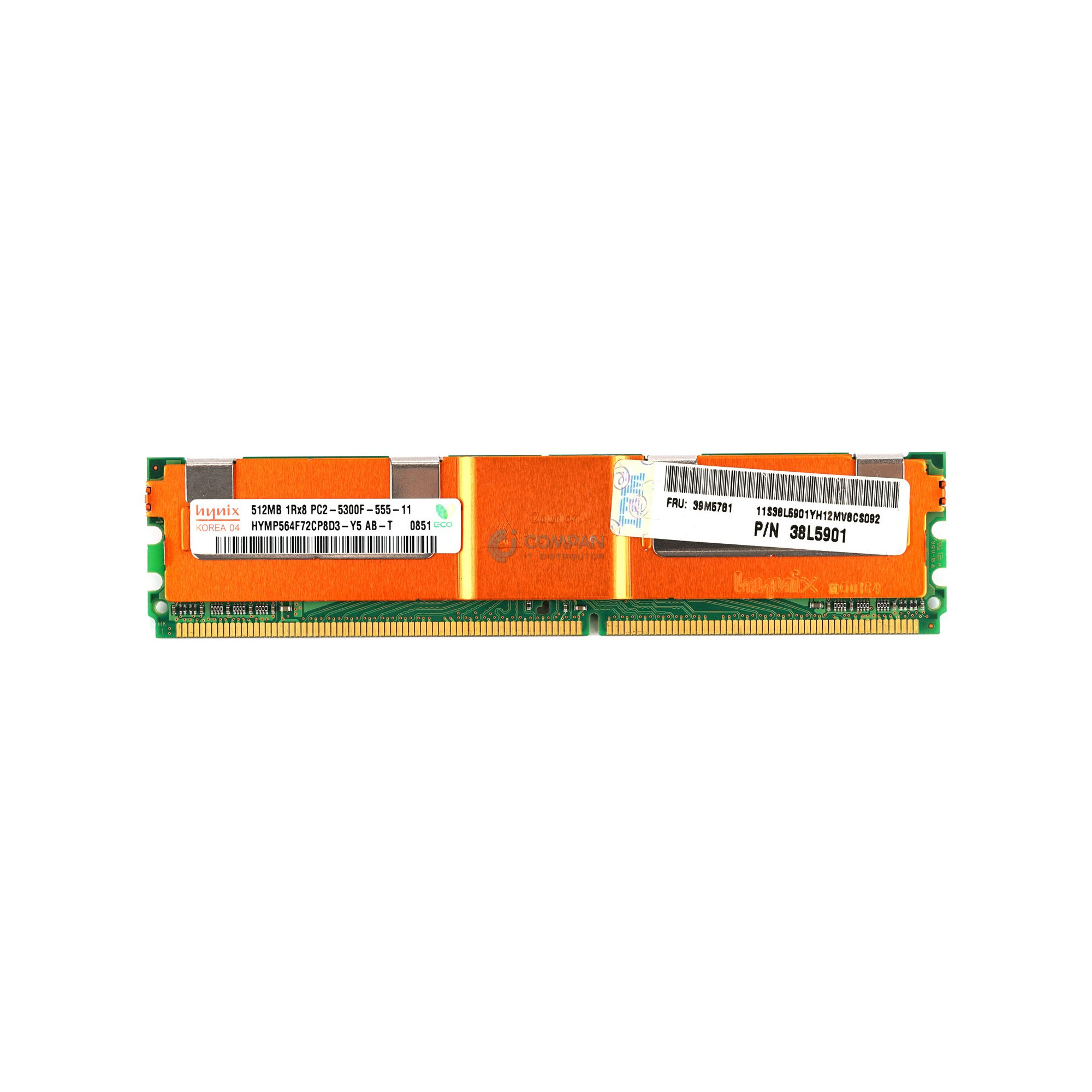 39M5781 IBM MEMORY 512MB PC2-5300 CL5 DDR2 - 39M5782, M395T6553EZ4-CE66, HYMP564F72CP8D3-Y5 Capacity: 512 MB Product Number: 39M5781 Bus Speed: PC2-5300 (DDR2-667) Memory Features: ECC-Speicher, Fully Buffered Form Factor: DIMM