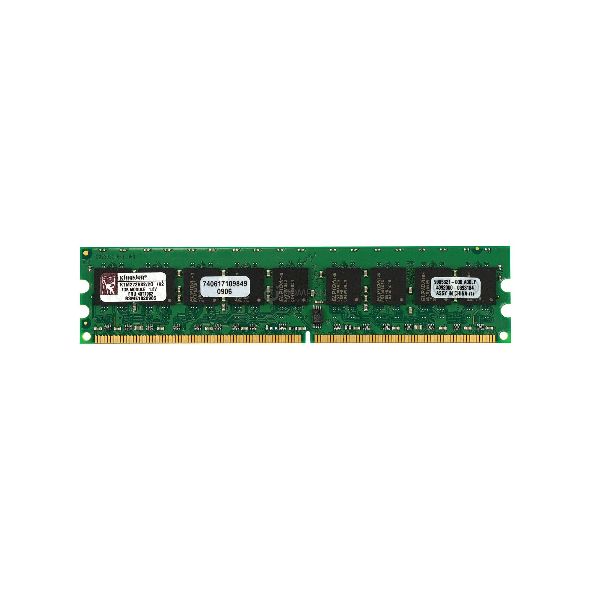 40T7982 IBM MEMORY 1GB PC2-5300E DDR2 - KTM2726K2-2G Capacity: 1 GB Product Number: 40T7982 Bus Speed: PC2-5300 (DDR2-667) Memory Features: ECC-Speicher Form Factor: DIMM