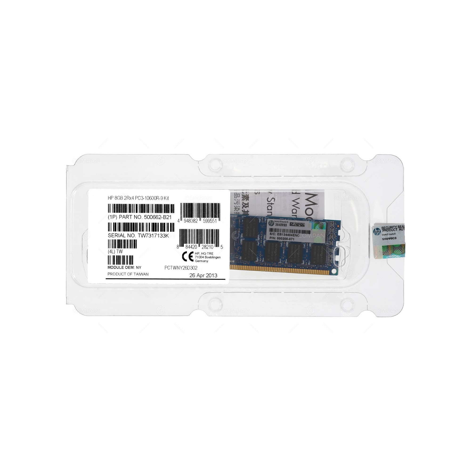 500662-B21 HP MEMORY 8GB 2RX4 PC3 10600R DDR3 501536-001, 500205-071,