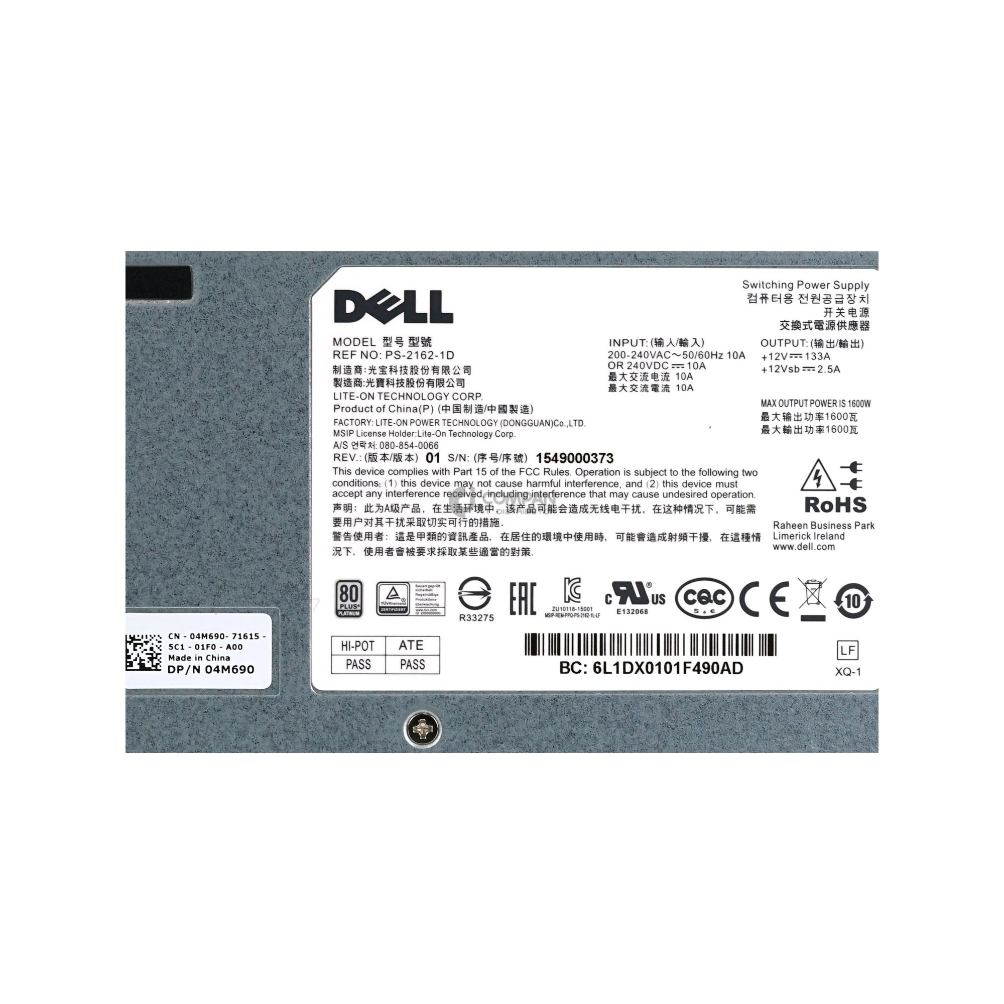 | Description | 1600W 80PLUS PLATINUM POWER SUPLLY |