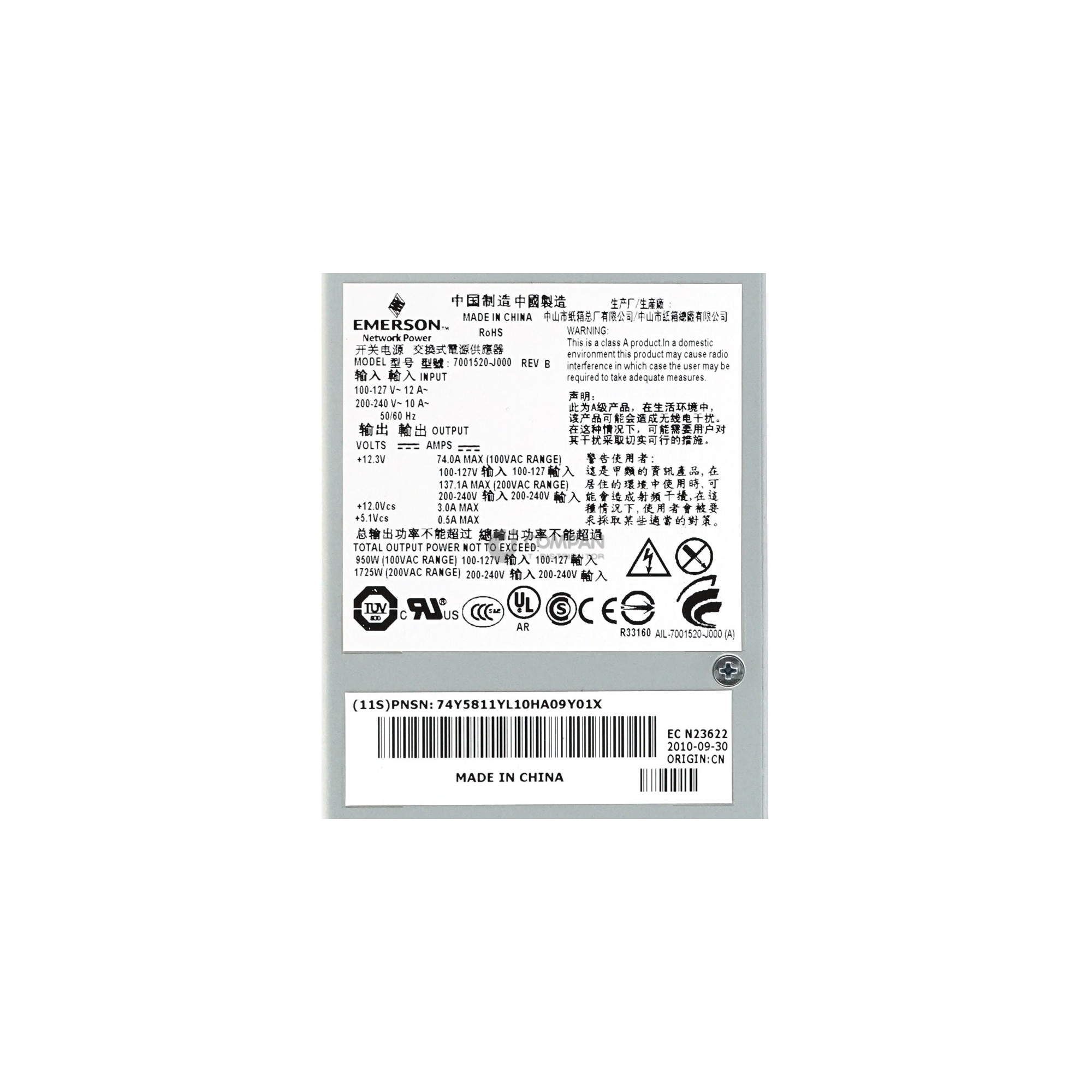 | Description | 1725W AC POWER SUPPLY |