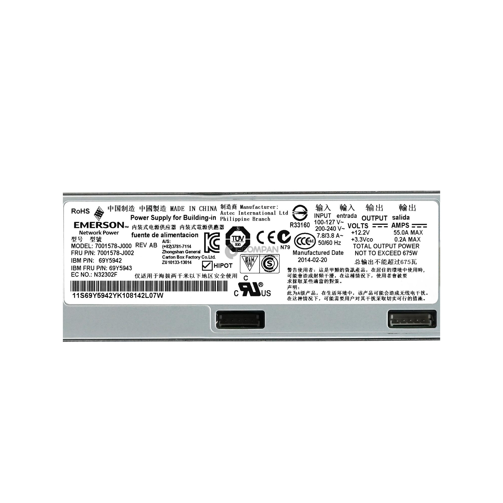 69Y5943 IBM 675W POWER SUPPLY FOR X3650 M3 X3530 M4 X3850 X3950 M5 69Y5942, 7001578-J002 PN: 69Y5943