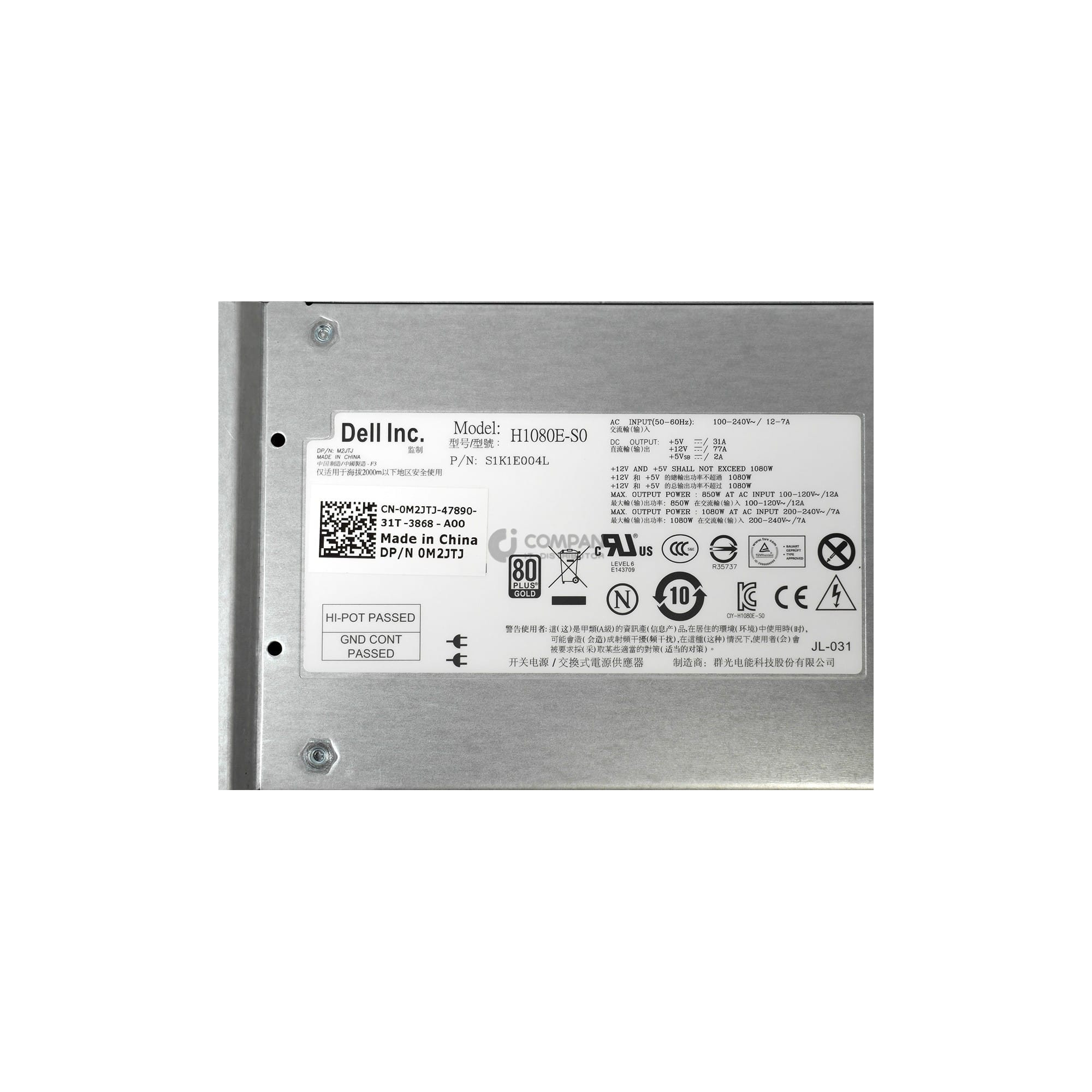 M2JTJ DELL 1080W POWER SUPPLY EQUALLOGIC PS6100 S1K1E003L,H1080E-S0