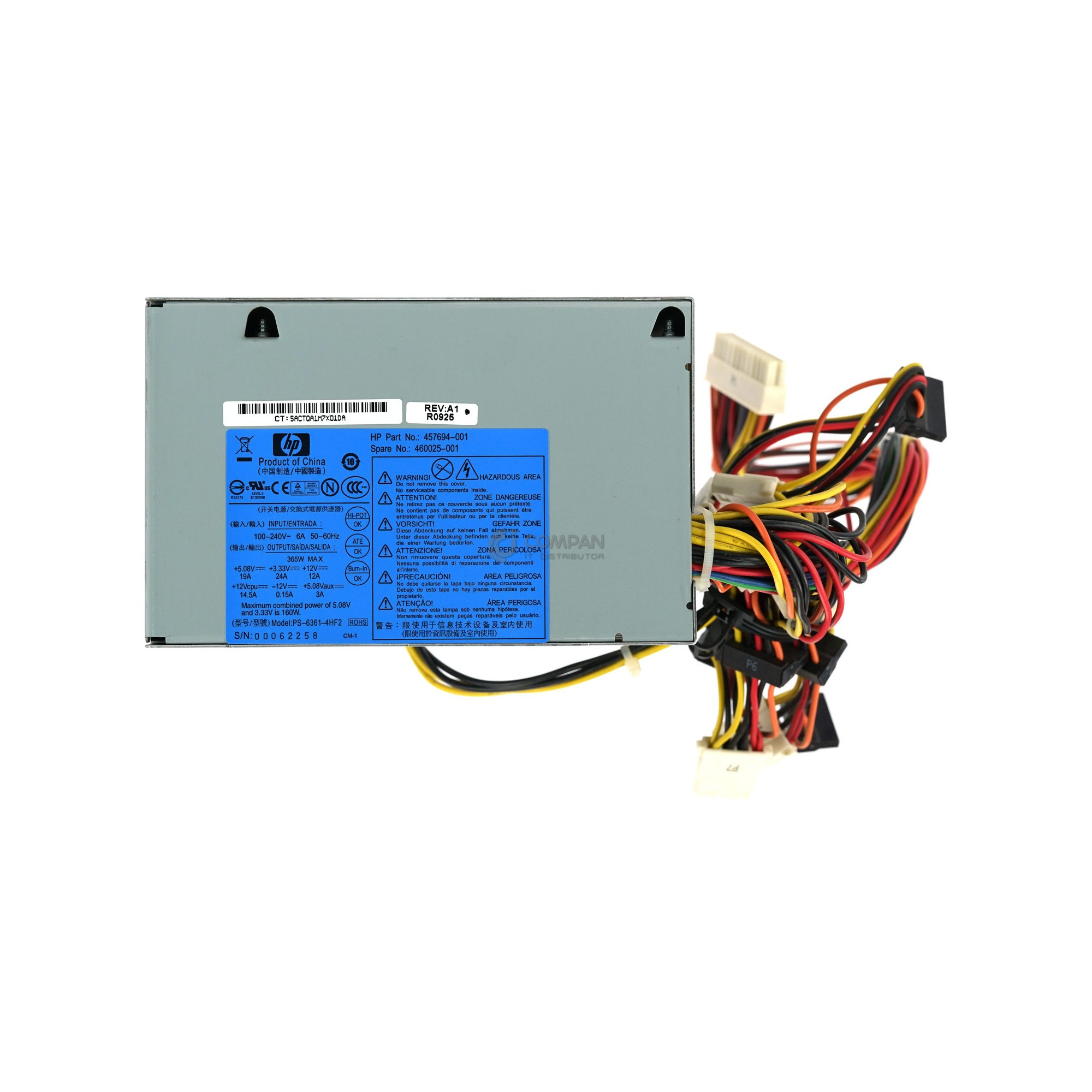 460025-001 HP PROLIANT 365W POWER SUPPLY FOR ML115 G5 457694-001