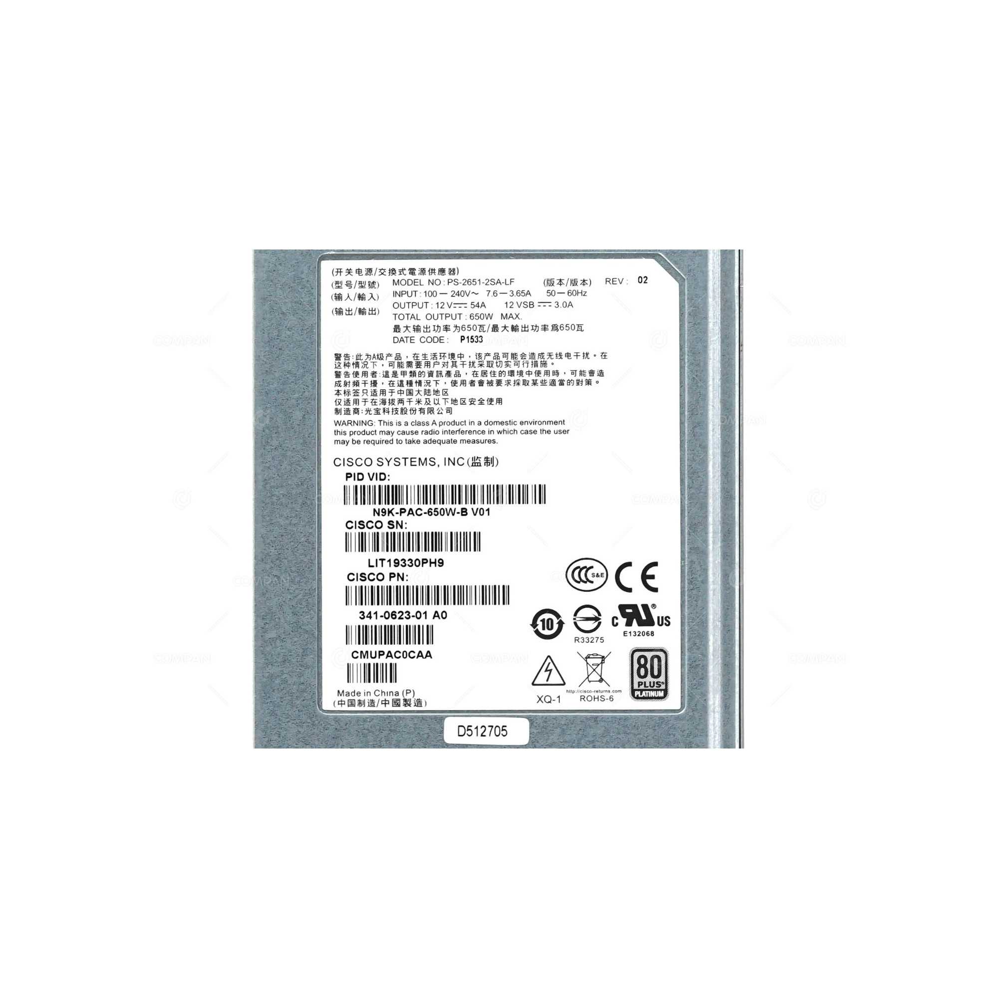 | MPN | N9K-PAC-650W-B |
