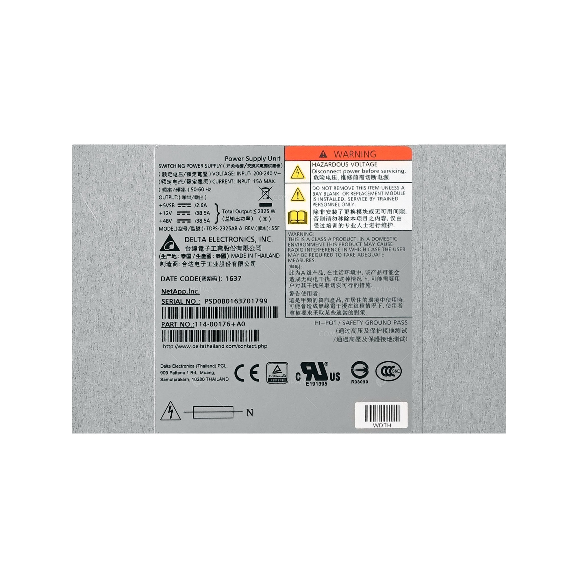 | Description | 2325W SWITCHING POWER SUPPLY |