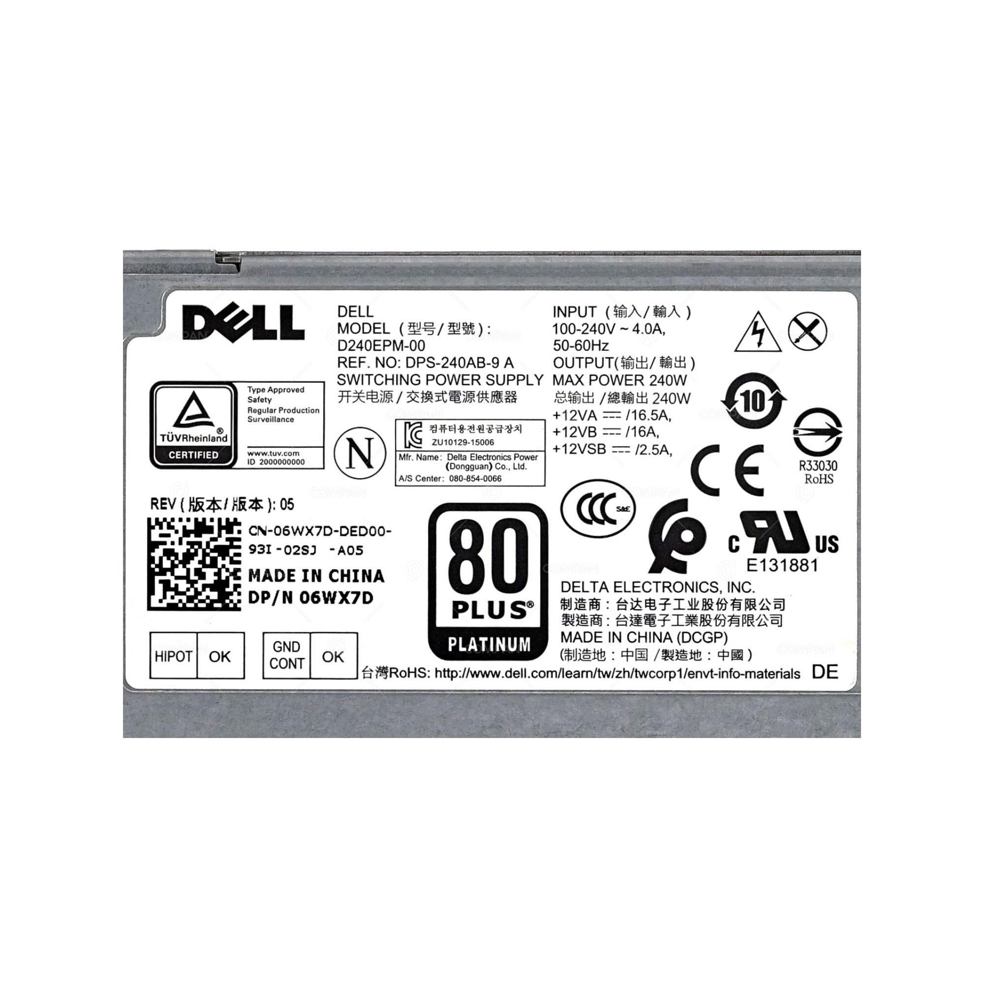 | Part Options | 06WX7D, D240EPM-00, DPS-240AB-9 |