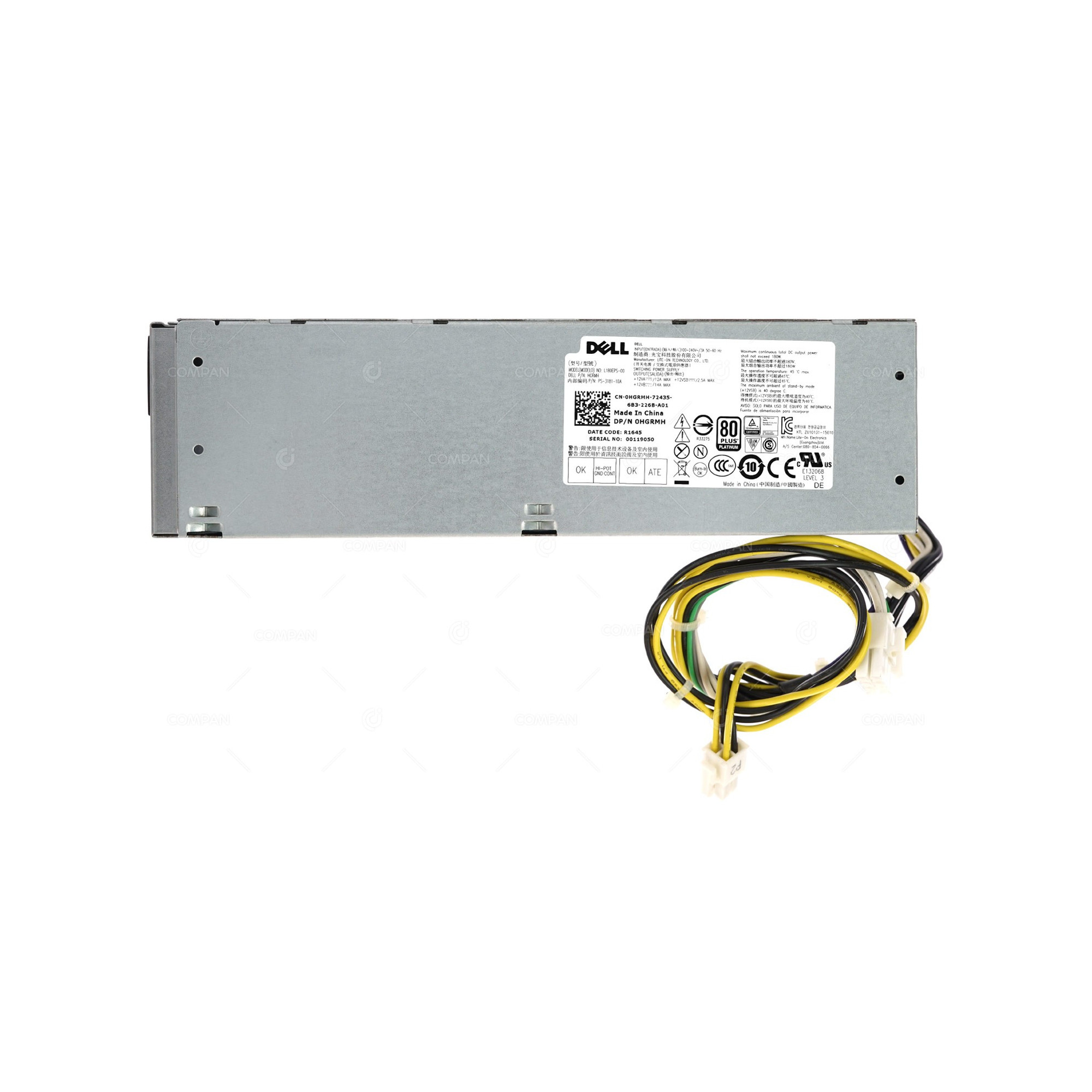 HGRMH DELL 180W POWER SUPPLY FOR OPTIPLEX 3040, 5040, 7040 0HGRMH, L180EPS-00, PS-3181-1DA