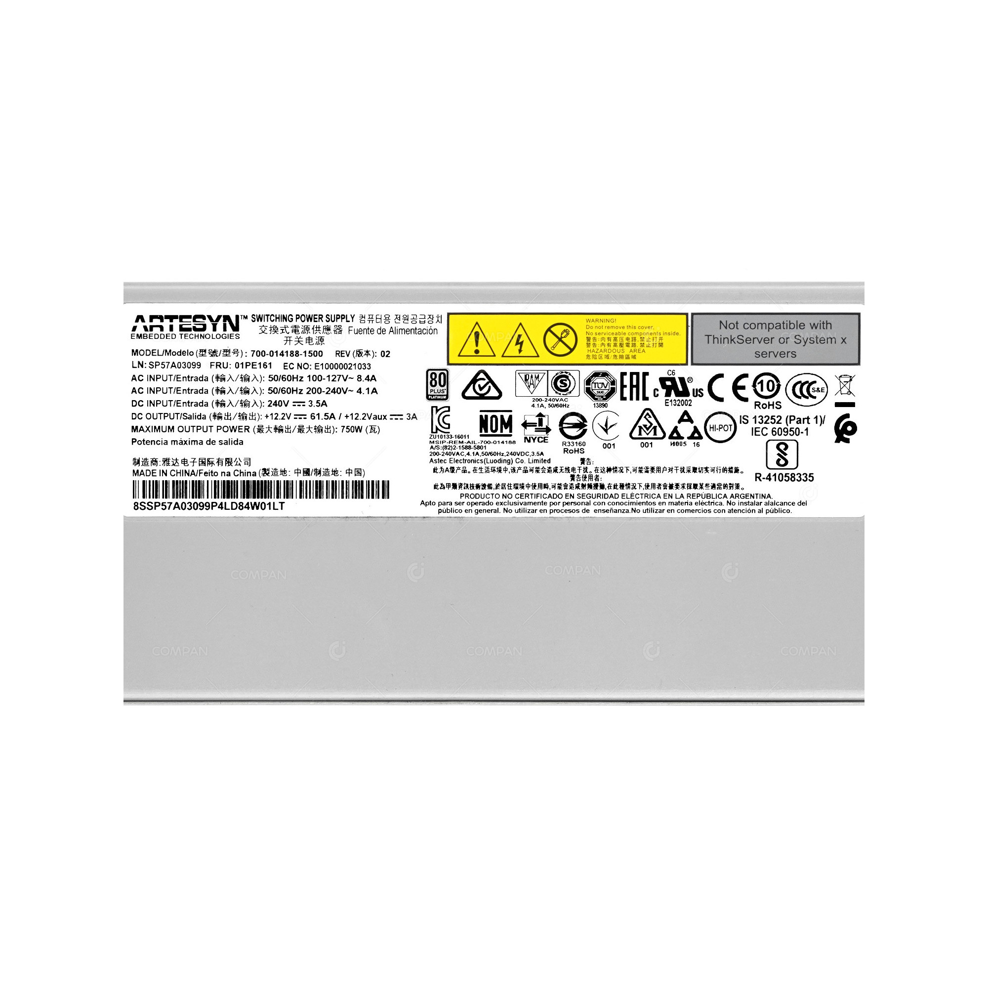 01PE161 IBM 750W PLATINUM HOT SWAP POWER SUPPLY 700-014188-1500