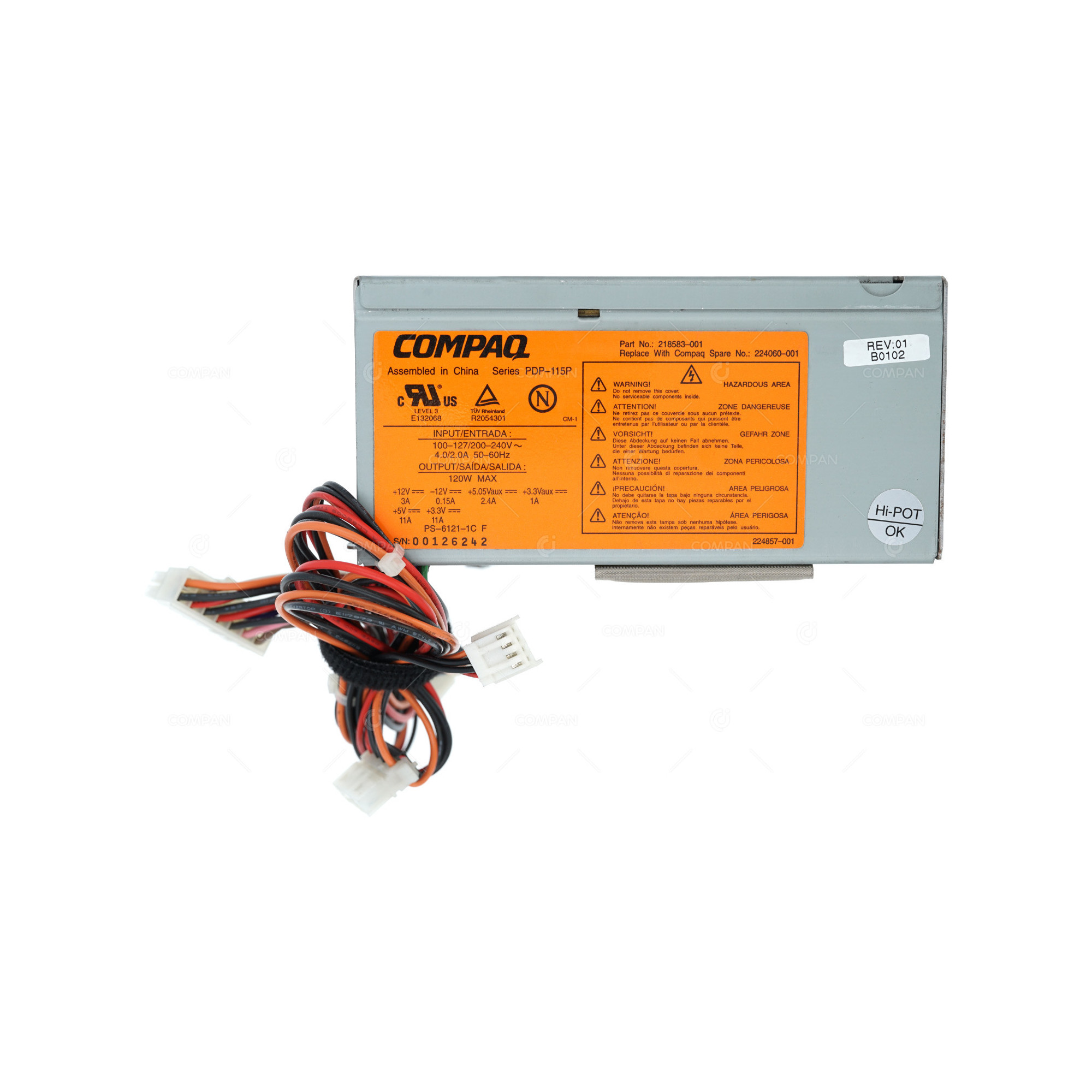 224060-001 HP 120W POWER SUPPLY FOR COMPAQ DESKPRO 218583-001, PDP-115P, PS-6121-1C, 224857-001