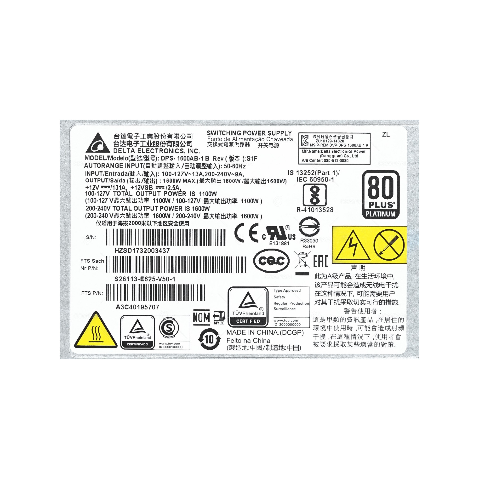 | Part Options | S26113-E625-V50-1, DPS-1600AB-1 |