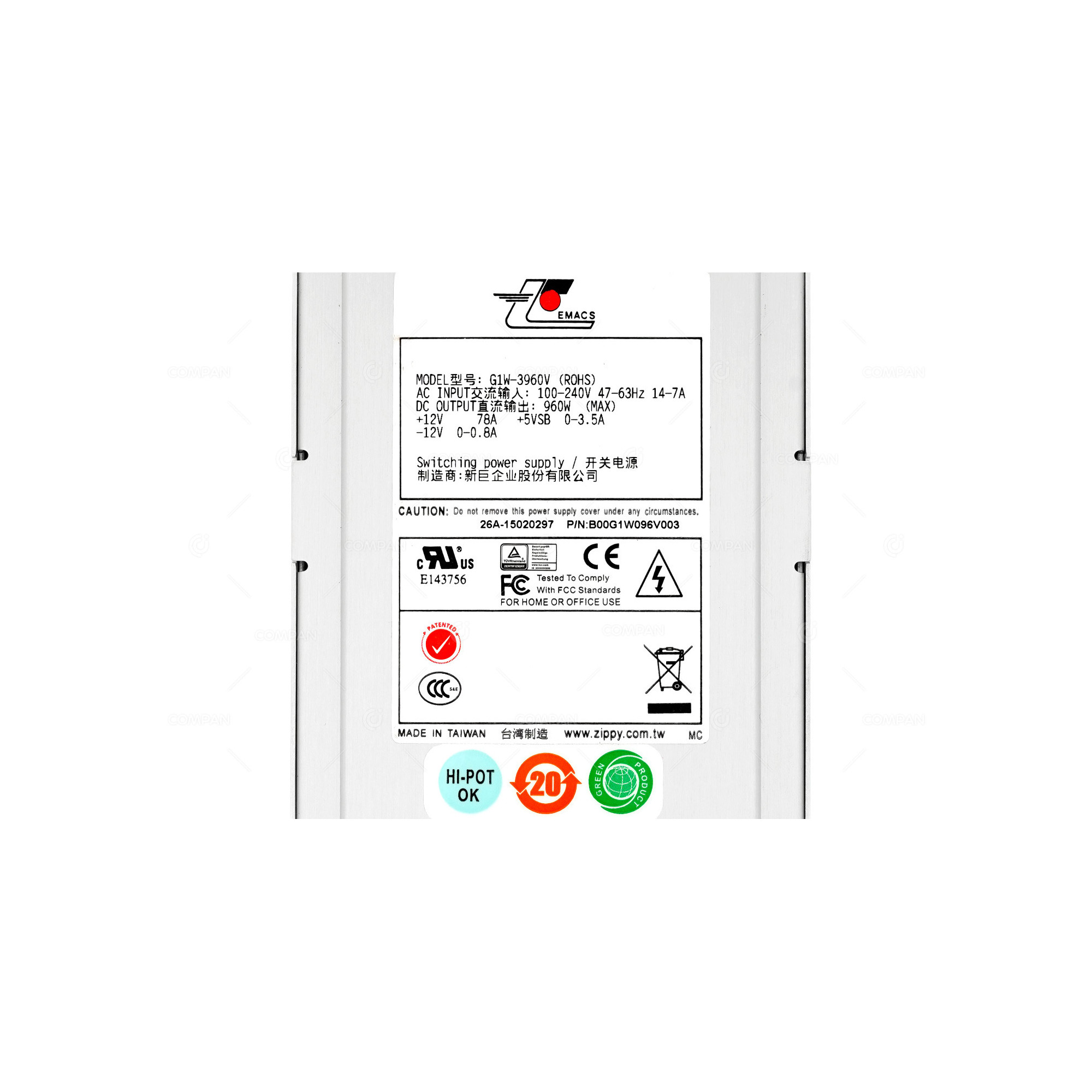 B00G1W096V003 EMACS G1W-3960V 960W POWER SUPPLY B00G1W096, 26A-16080173, GP700041, 26C-16040671