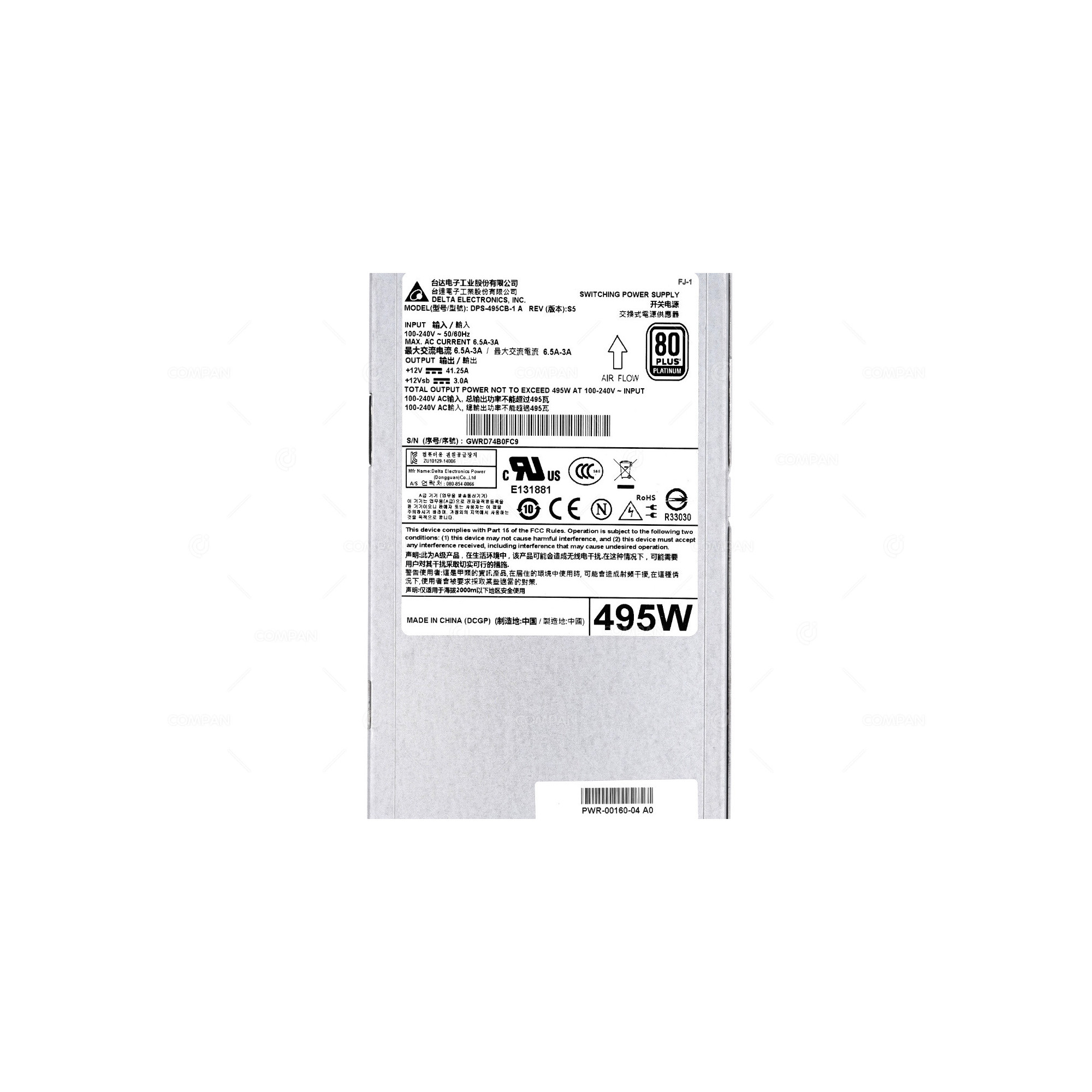 PWR-00160-04 ARISTA 495W AC POWER SUPPLY REAR TO FRONT AIRFLOW FOR 7280SR DPS-494CB-1