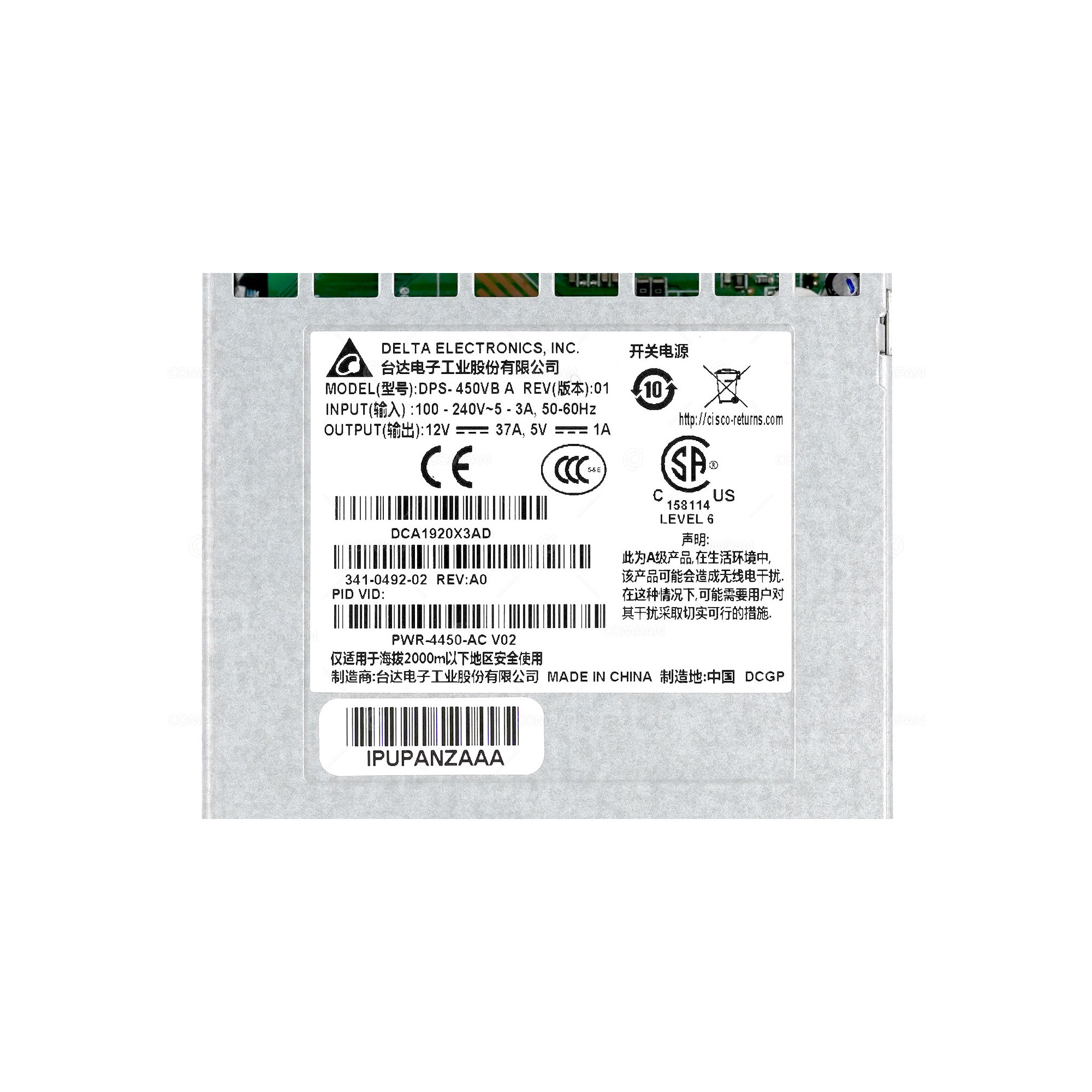 PWR-4450-AC CISCO POWER SUPPLY FOR CISCO ISR 4450 AND ISR 4350 SERIES 341-0492-02, DPS-450VB
