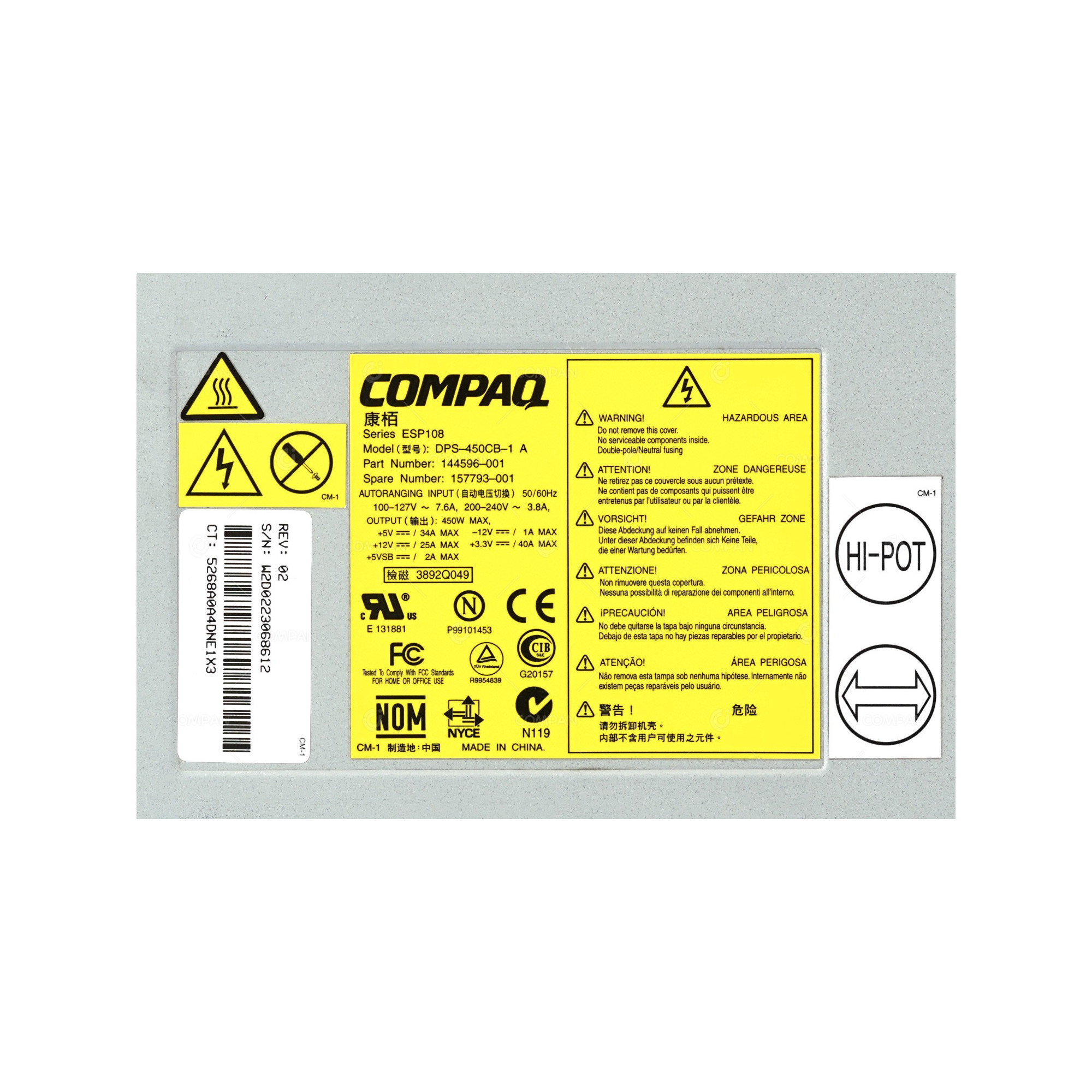 | Part Options | 144596-001, DPS-450CB-1, 744148-B21 |