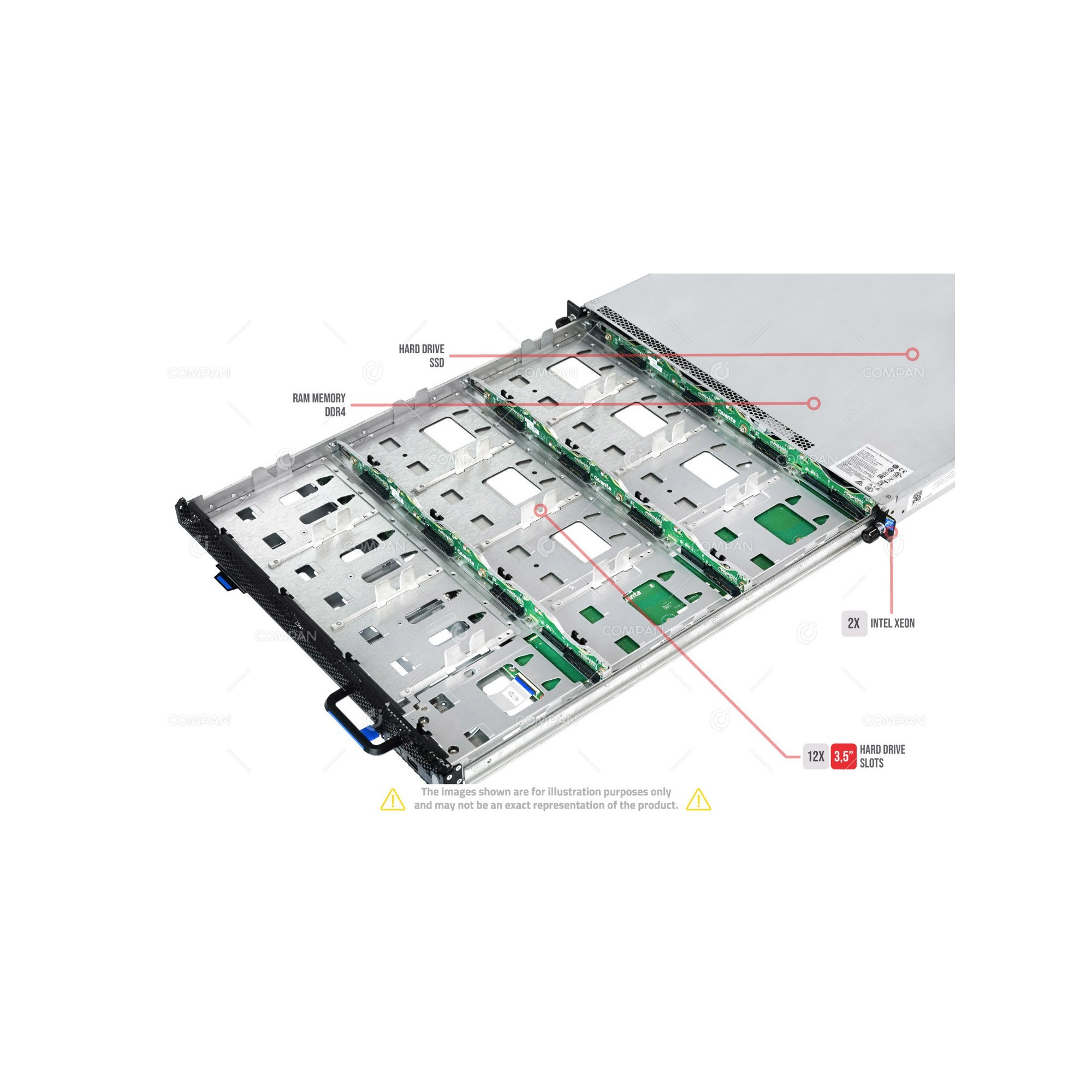 The QuantaGrid series server offers exceptional storage capacity while maintaining a height of 1U. Slide-out tray for 12x 3.5' drives as well as 4 slots for 2,5' drives on the front of the unit provide exceptional storage flexibility