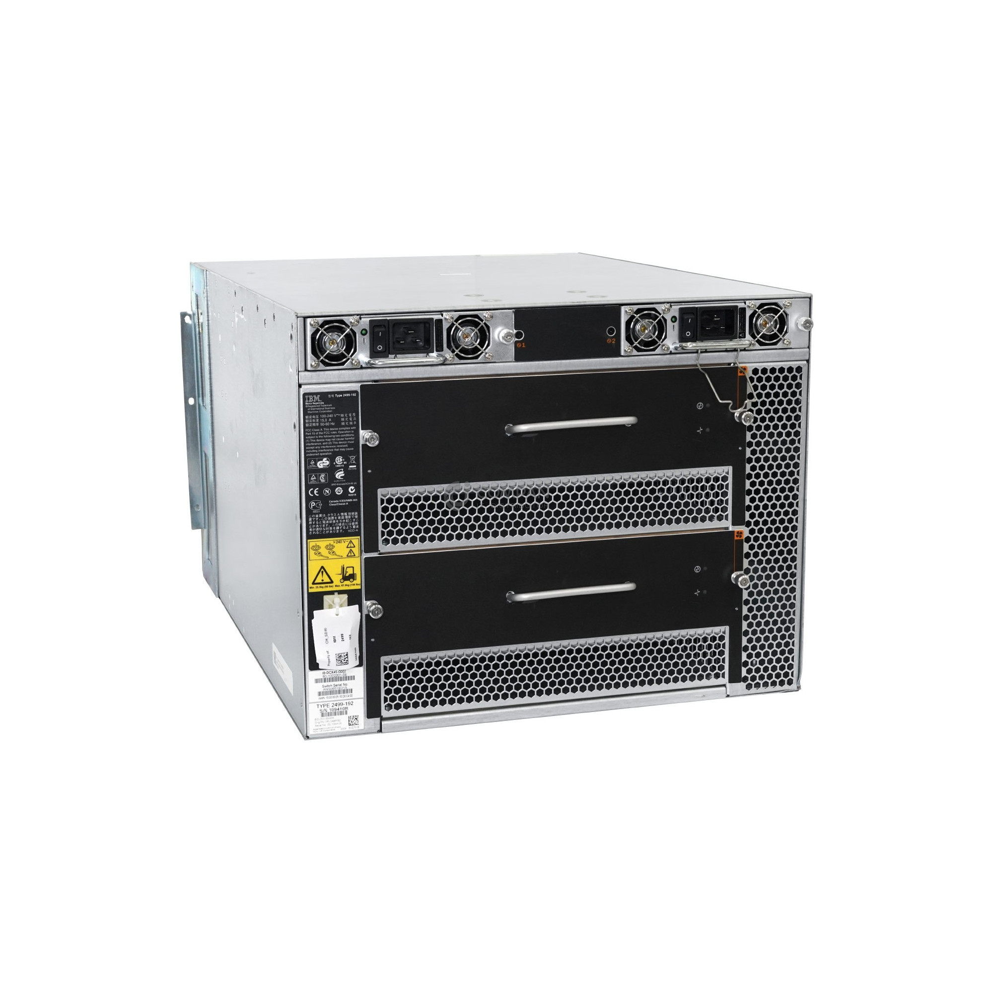 | Installed Modules | 2 x BROCADE DCX FAN BLOWER ASSEMBLY 2 x BROCADE POWER SUPPLY 2000W 2 x BROCADE 32-PORT 8GB FIBRE DCX BLADE 2 x BROCADE CR4S8 SAN SWITCH DIRECTOR PROCESSOR CORE BLADE F 2 x EMC BROCADE CONTROL PROCESSOR CARD |