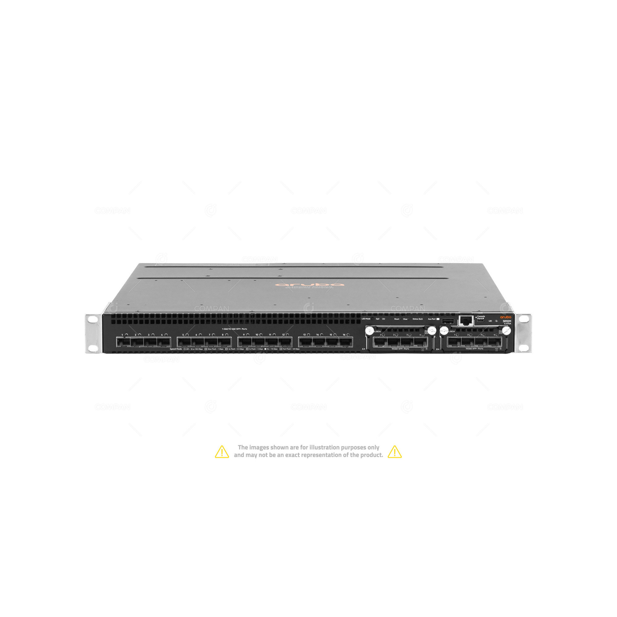 The Aruba 3810M 16SFP+ 2-Slot Switch delivers advanced performance, resiliency, and flexibility for enterprise campus core and aggregation deployments. With 16 high-speed 10GbE SFP+ ports and two modular slots, the JL075A enables scalable connectivity and investment protection through a flexible architecture that supports future growth and evolving business needs. Designed for performance-driven environments, the Aruba 3810M offers a switching capacity of up to 480 Gbps and up to 285.7 Mpps of forwarding throughput. Enterprise-class features like robust Layer 3 routing, dynamic segmentation, policy-based traffic management, and high availability make it ideal for demanding enterprise applications. The switch supports front-to-back airflow, hot-swappable fans, and optional redundant power supplies, ensuring high reliability in mission-critical deployments. Integrated Aruba Virtual Switching Framework (VSF) stacking allows for simplified management and seamless scalability across up to 10 switches in a ring topology or 5 in mesh. This device is a superb choice for :
