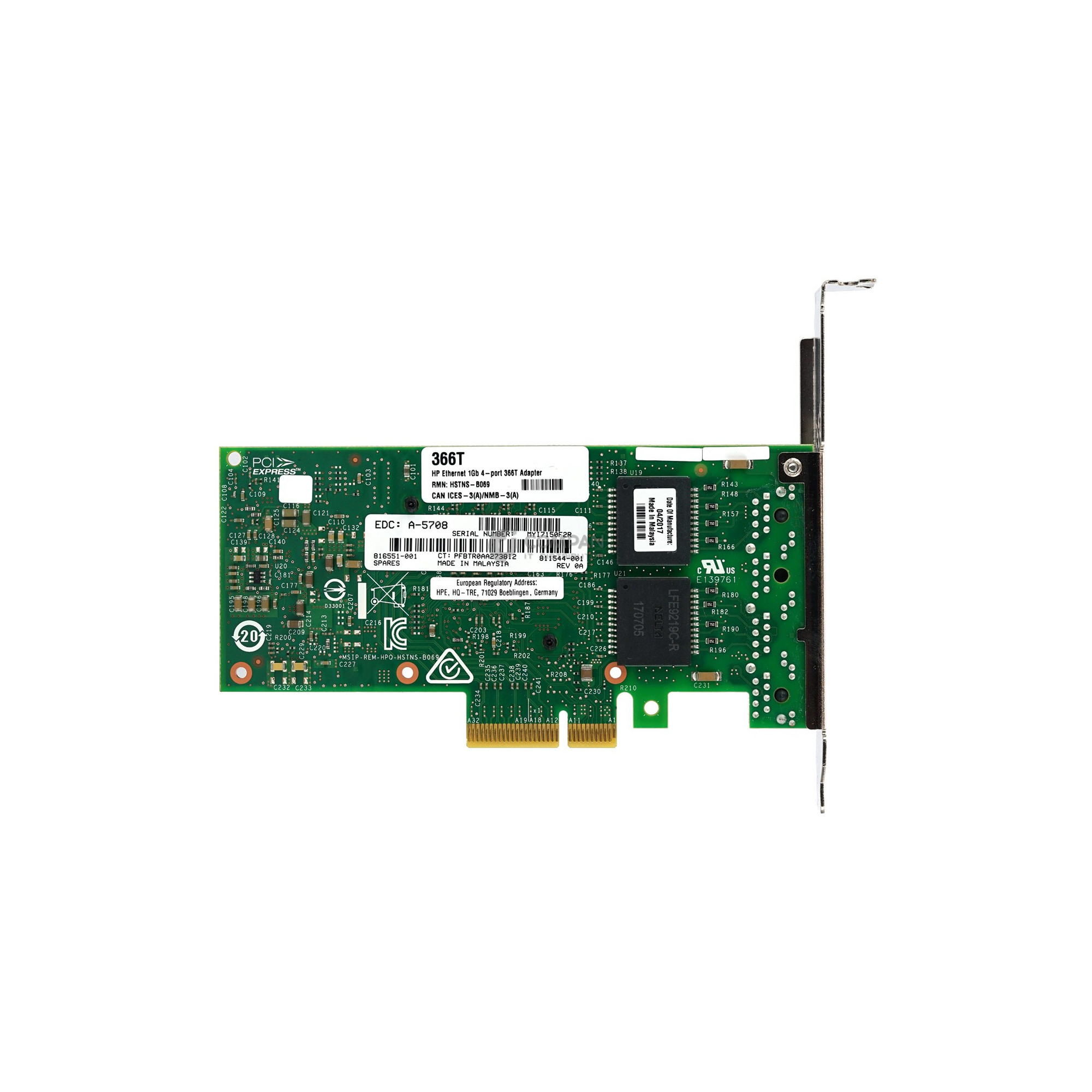 816551-001 HP 366T QUAD PORT 1GB RJ-45 ETHERNET ADAPTER FOR HP PROLIANT G9