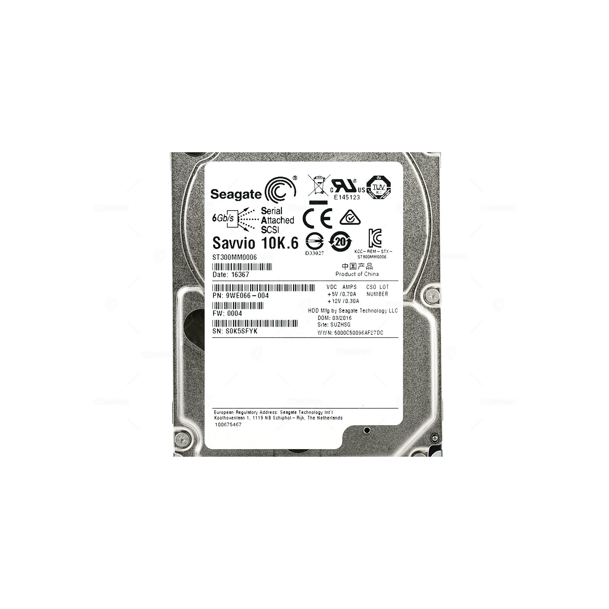 ST300MM0006 SEAGATE HARD DRIVE 300GB 10K 6G SAS 2.5 SFF HOT-SWAP 9WE066-004,