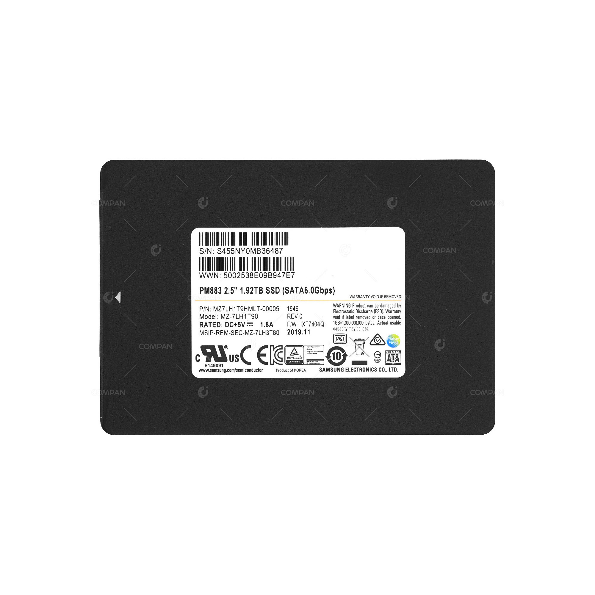 SAMSUNG PM883 2.5 SFF 1.92TB 6G SATA TLC ENTERPRISE SSD