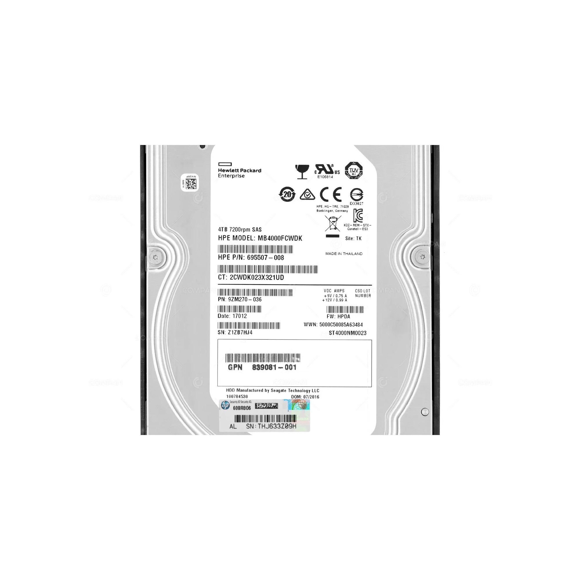839081-001, 695507-008, MB4000FCWDK, ST4000NM0023