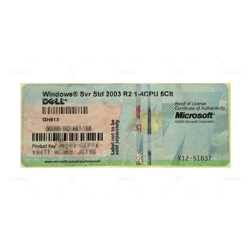 X12-51837-DELL WINDOWS SVR STD 2003 R2 1-4CPU 5CLT GH613