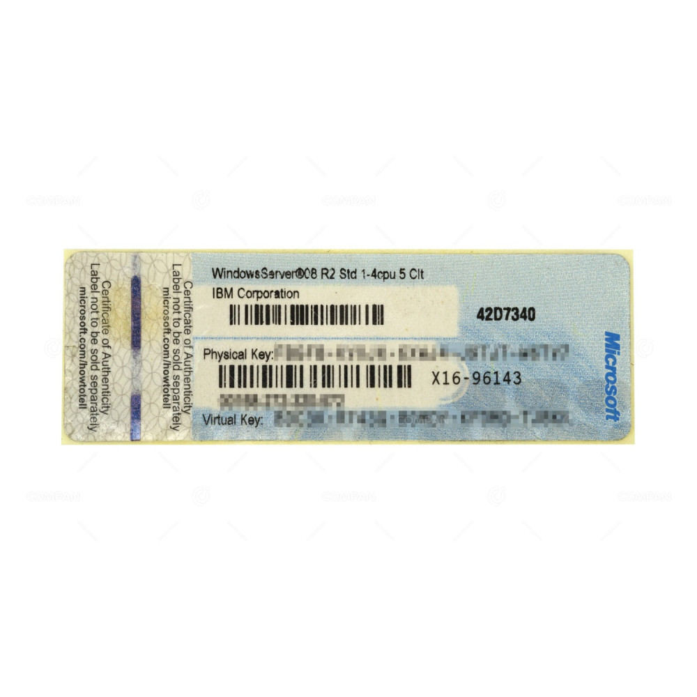 X16-96143-IBM WINDOWS SERVER 08 R2 STD 1-4CPU 5CLT 42D7340