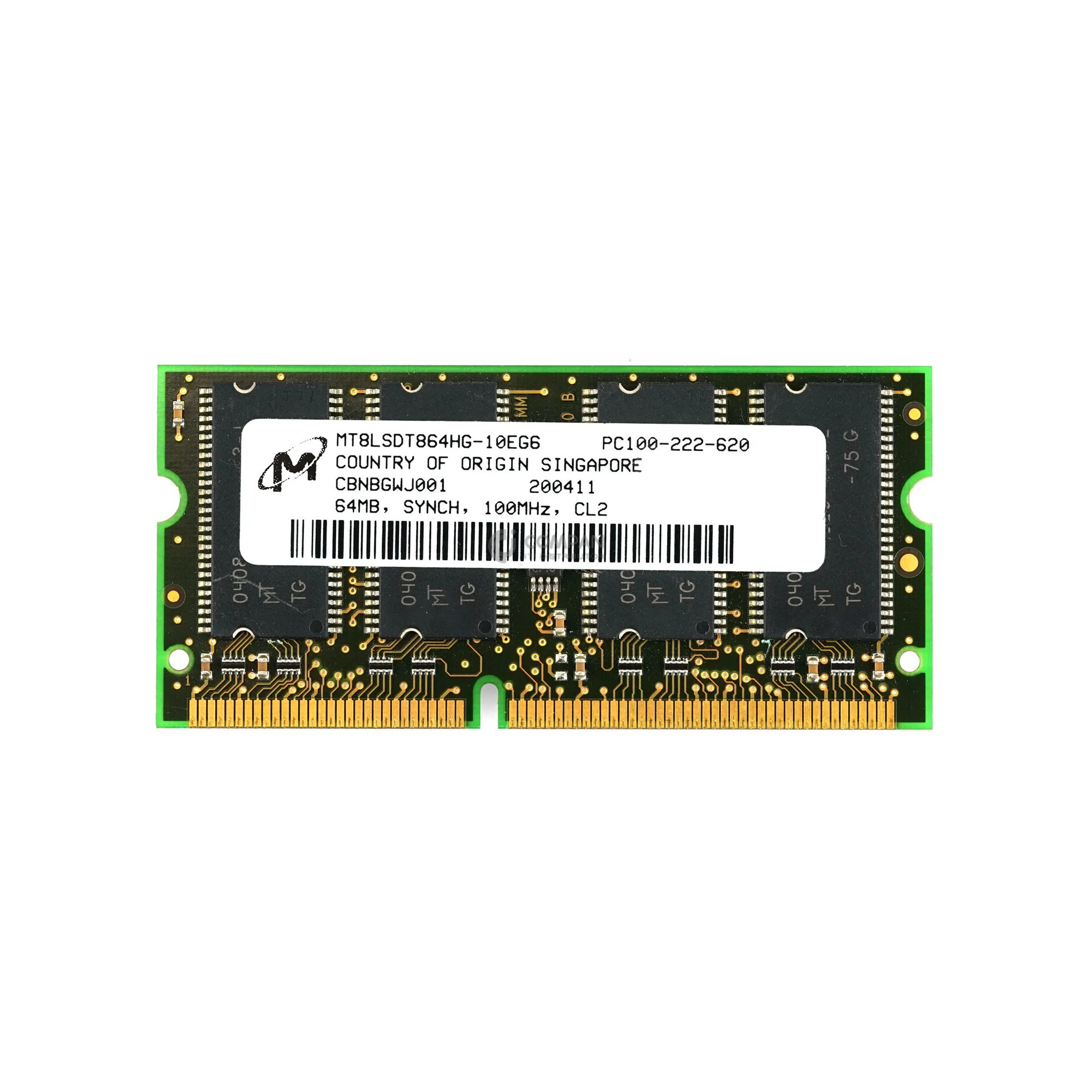 MT8LSDT864HG-10EG6 MICRON 64MB PC100 CL2 Capacity: 64 MB Product Number: MT8LSDT864HG-10EG6 Bus Speed: PC-100 Memory Features: non-ECC Form Factor: DIMM