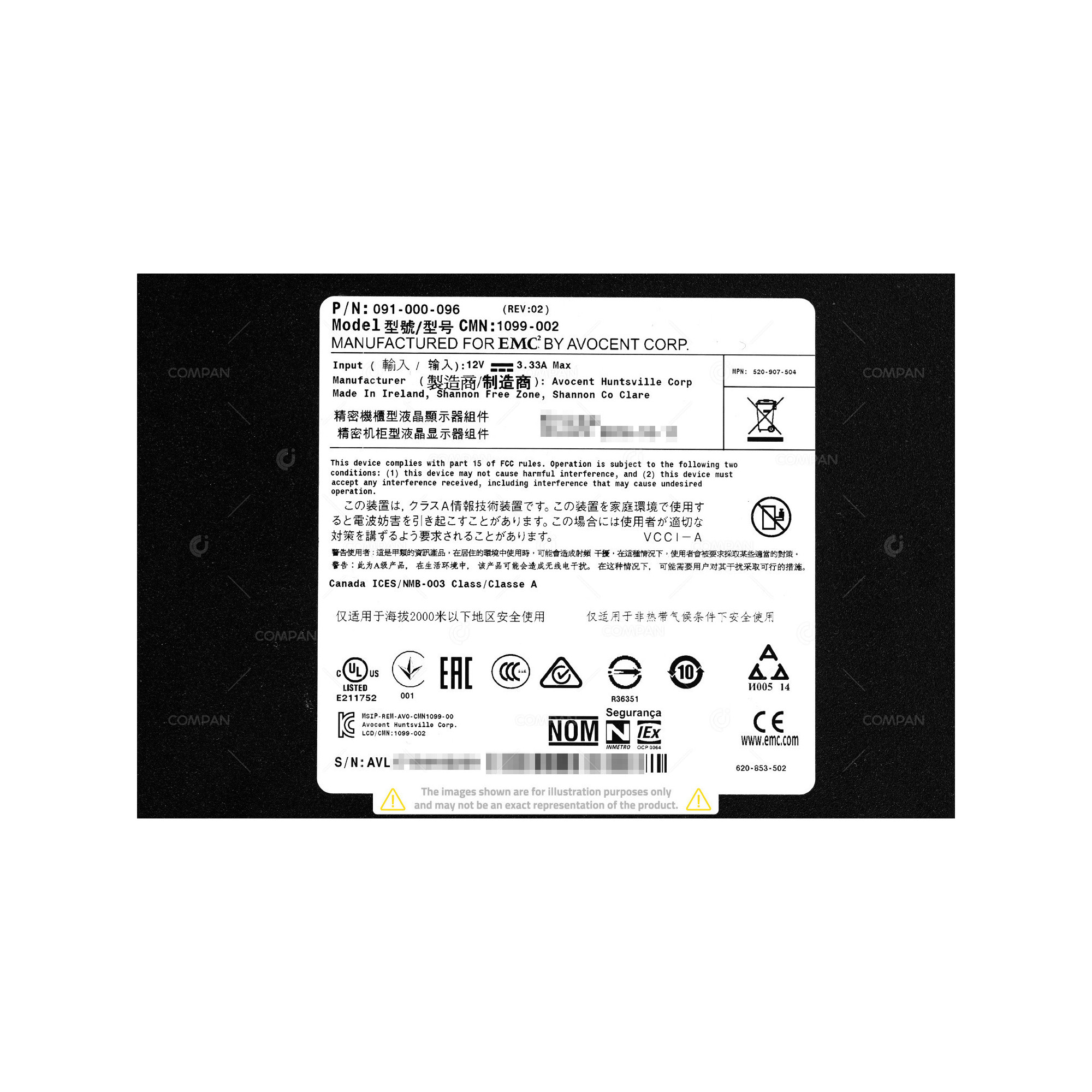 091-000-096 EMC 18.5 LCD RACKMOUNT KVM CONSOLE WITH RAILS QWERTY US 1099-002, 520-907-504, 620-853-502